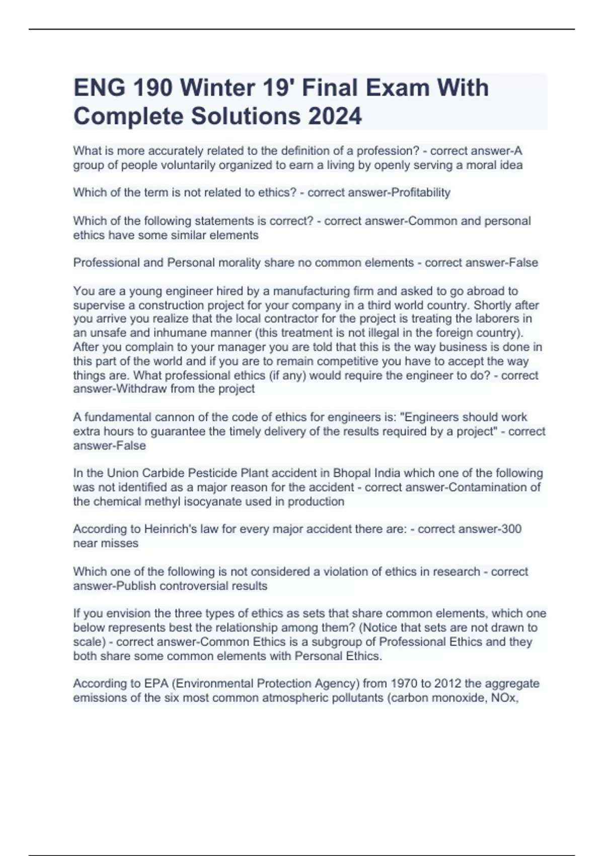 ENG 190 Winter 19' Final Exam With Complete Solutions 2024