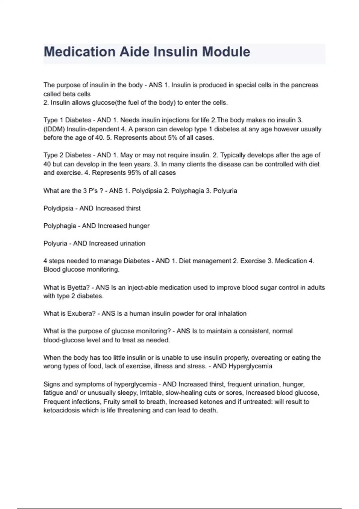 Medication Aide Insulin Module Exam 2024 Questions & Answers Graded A+.