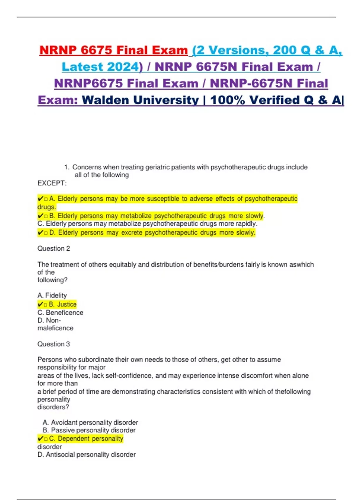 NRNP 6675 Final Exam (2 Versions, 200 Q & A, Latest 2024)