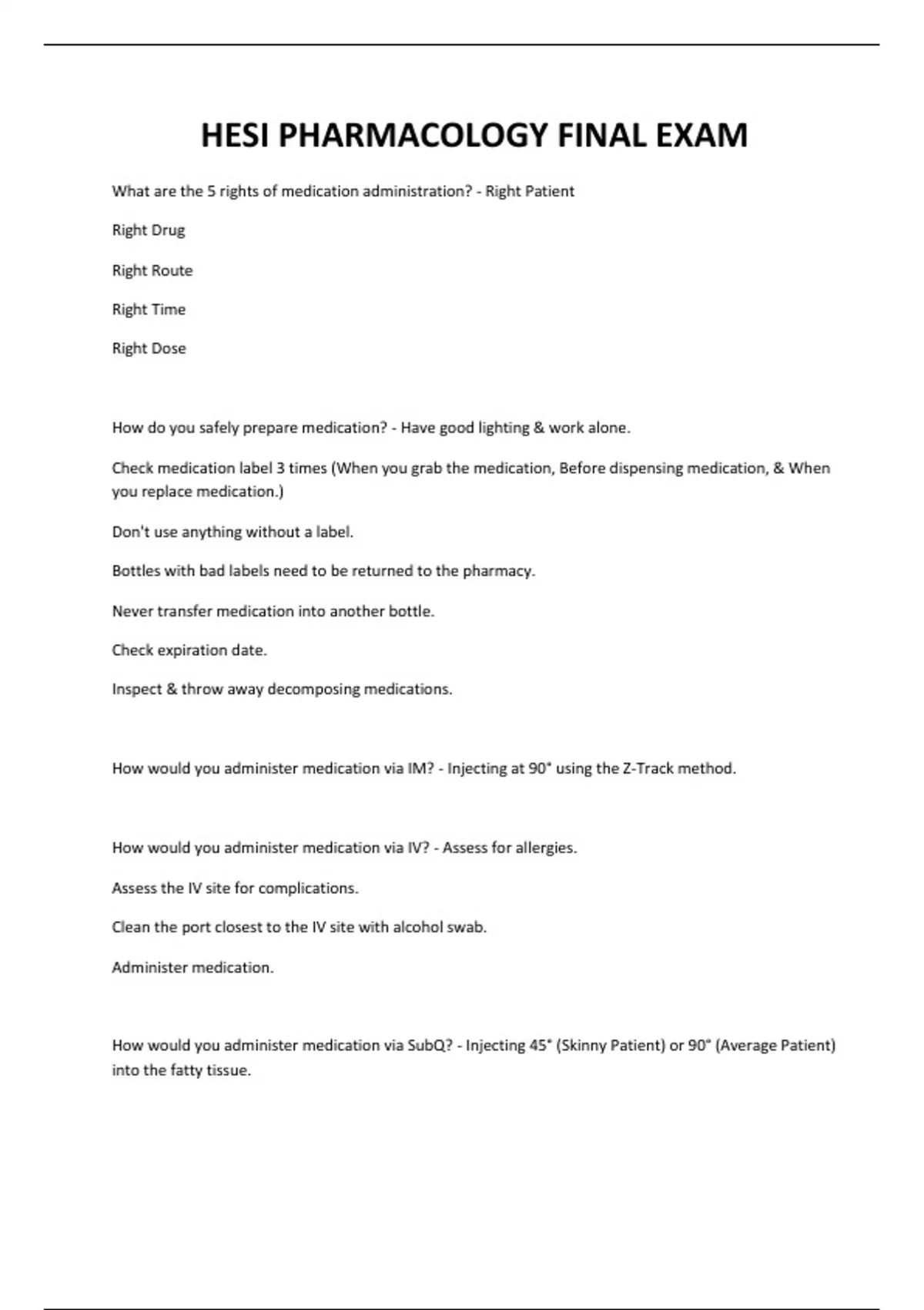 HESI PHARMACOLOGY PRACTICE QUESTIONS FOR FINAL