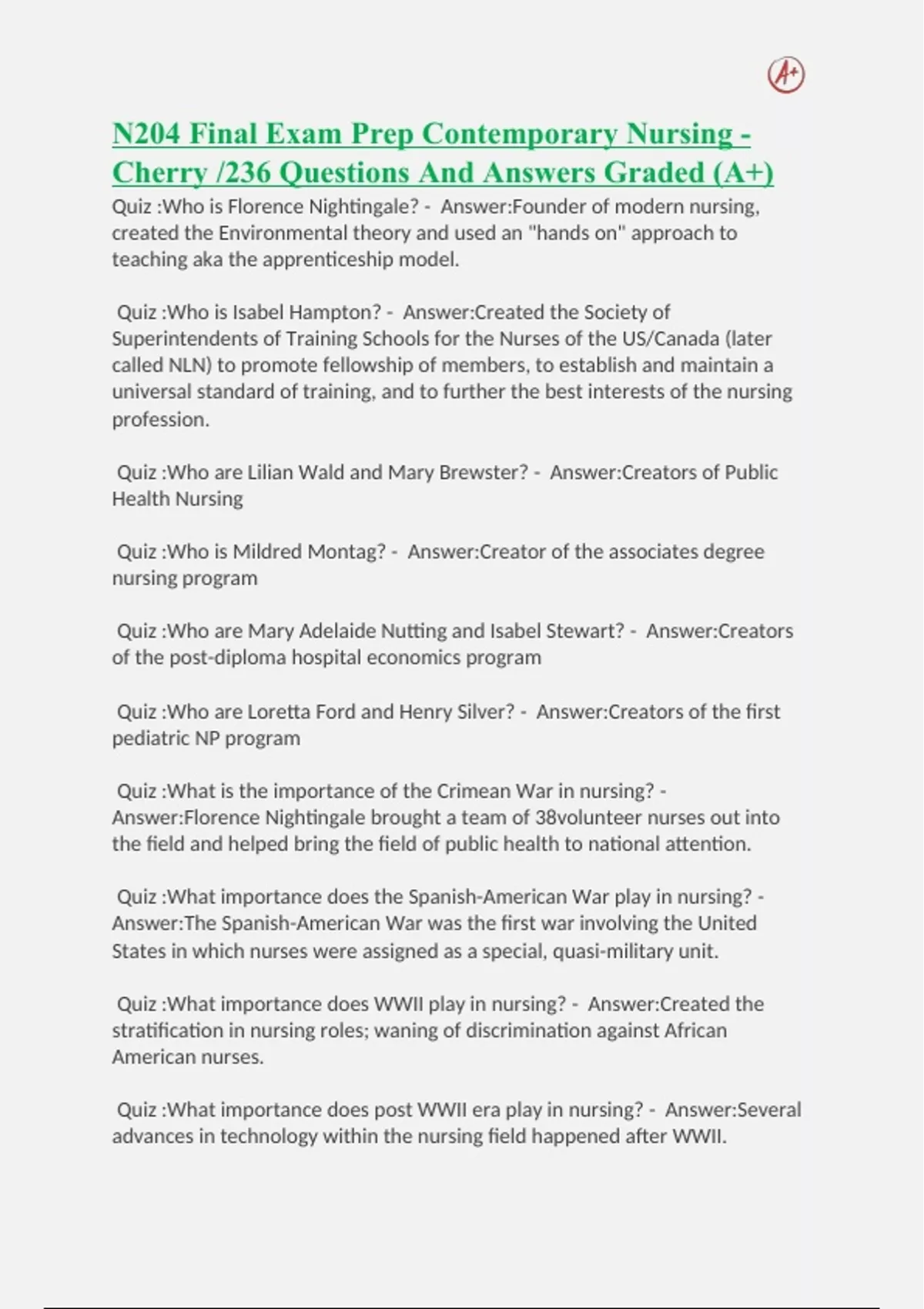 Quiz :What importance does WWII play in nursing? - Answer:Created the