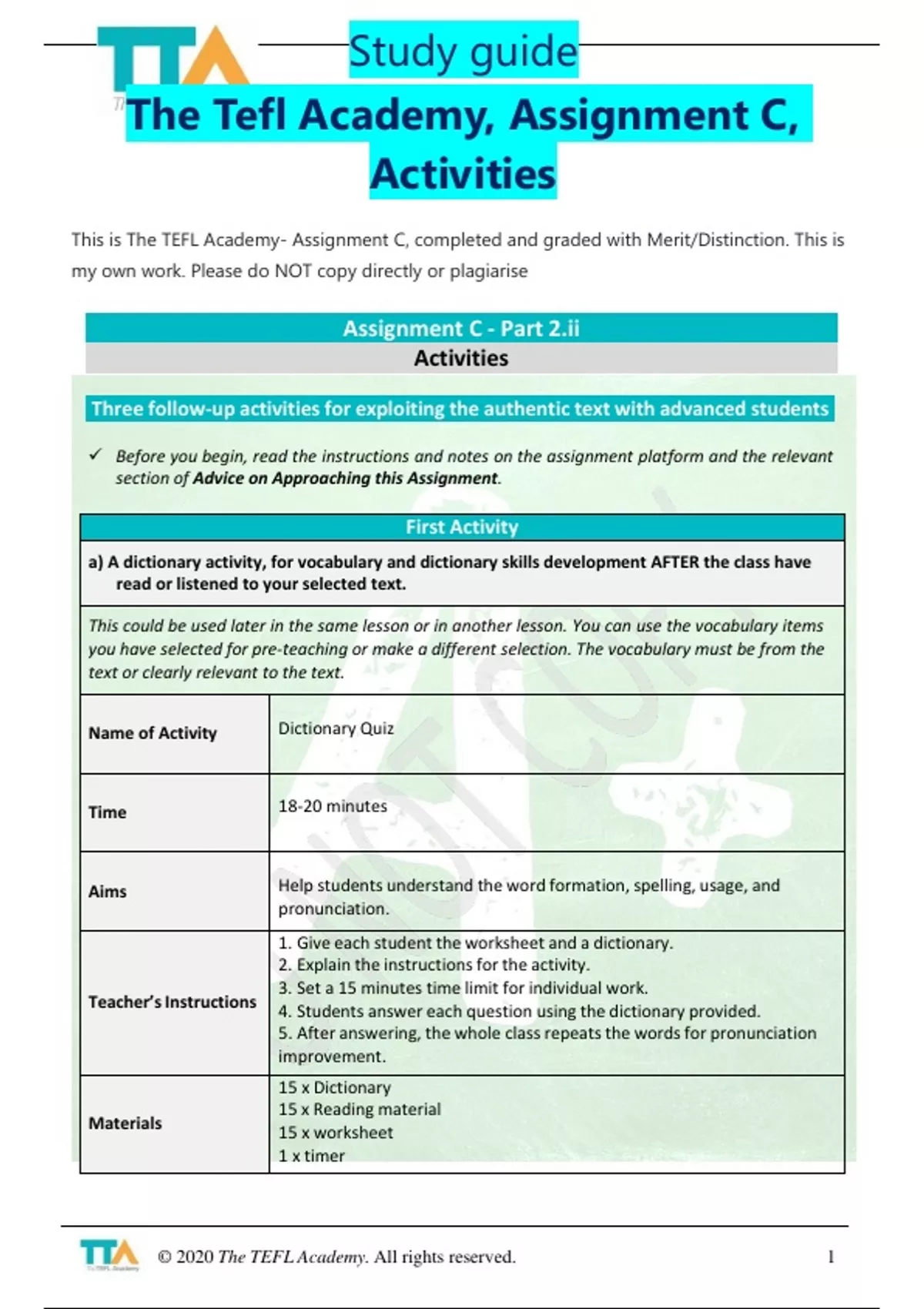 This is The TEFL Academy- Assignment C, completed and graded with Merit/Distinction. This is