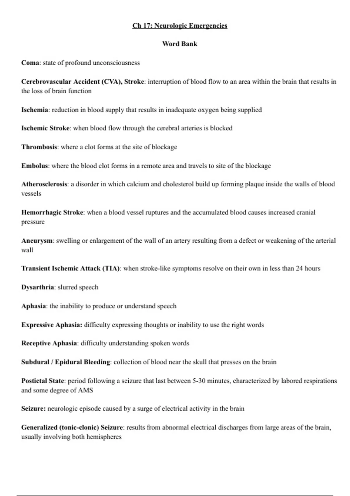 Summary Emergency Medical Technician Chapter 17: Neurologic Emergencies