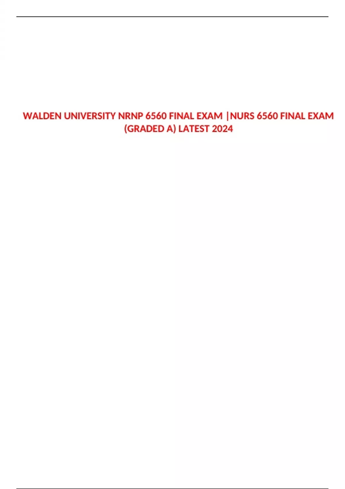 WALDEN UNIVERSITY NRNP 6560 FINAL EXAM |NURS 6560 FINAL EXAM (GRADED A) LATEST 2024