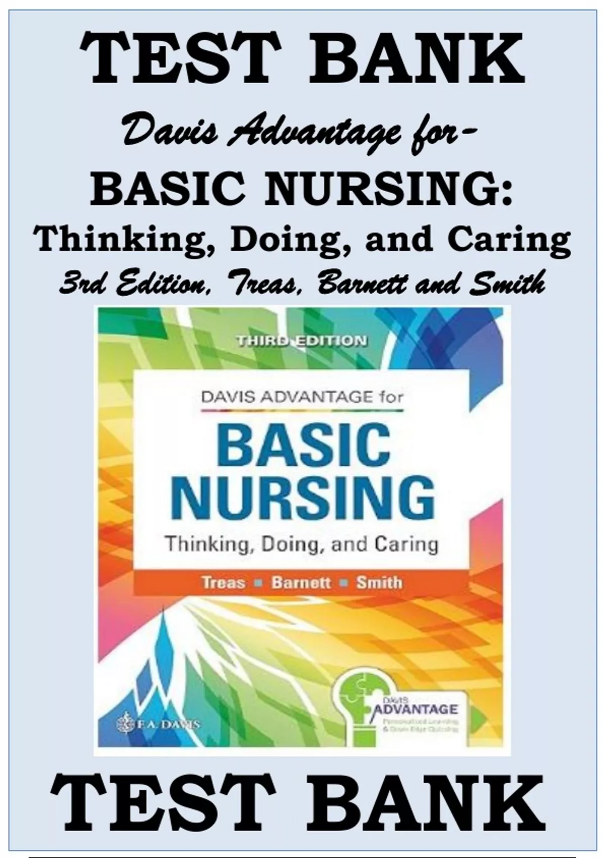 Test Bank Davis Advantage for Basic Nursing: Thinking, Doing, and Caring 3rd Edition Treas, Barnett and Smith |Newest Update (2024) All Chapters 1-41 Exam Elaborations Questions and Answer Key Feedback