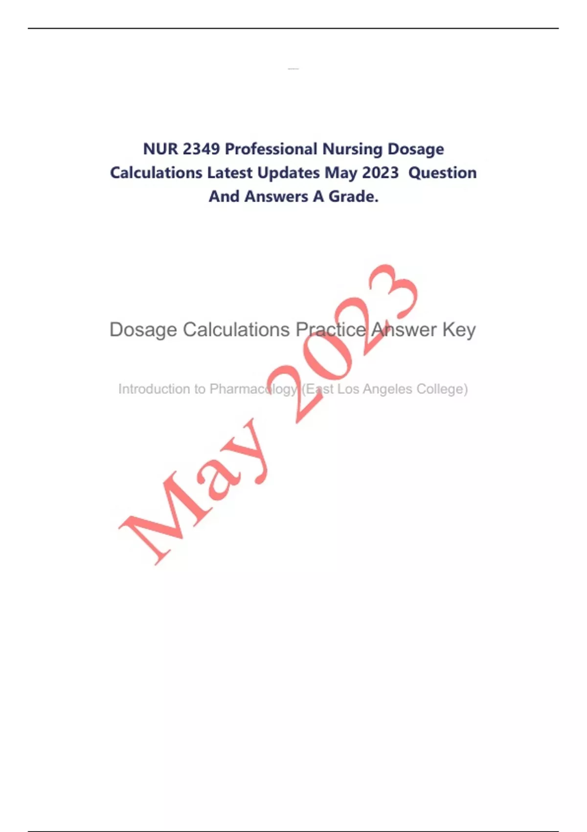 NUR 2349 Professional Nursing Dosage Calculations Latest Updates May 2023 Question And Answers A Grade.