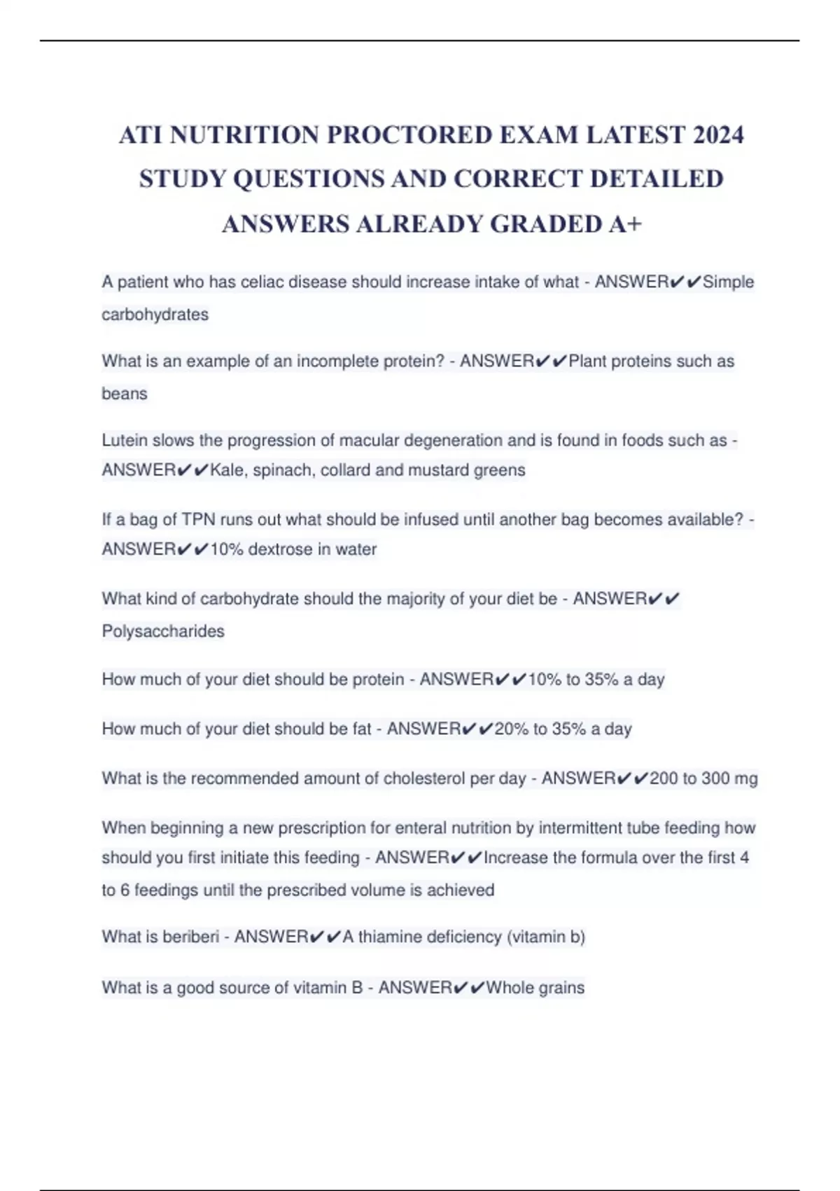 ATI NUTRITION PROCTORED EXAM LATEST 2024 STUDY QUESTIONS AND CORRECT DETAILED ANSWERS ALREADY GRADED A.