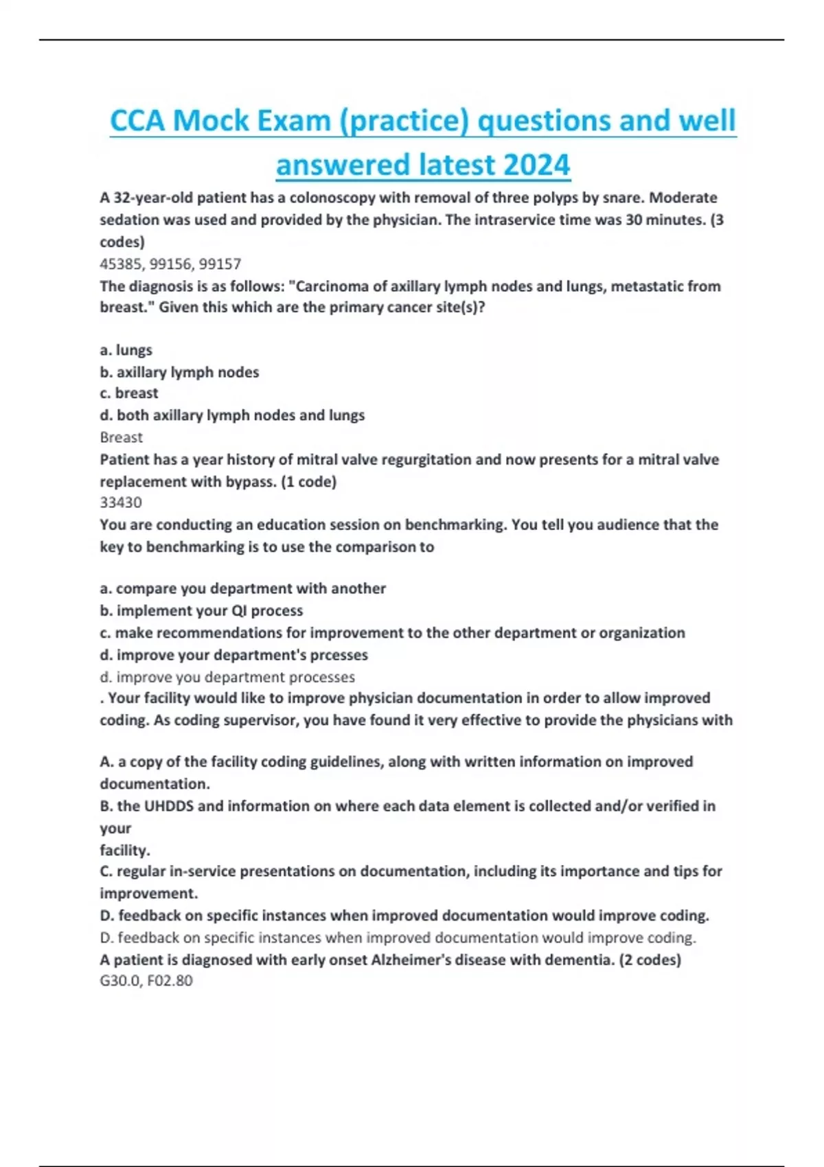 CCA Mock Exam (practice) questions and well answered latest 2024