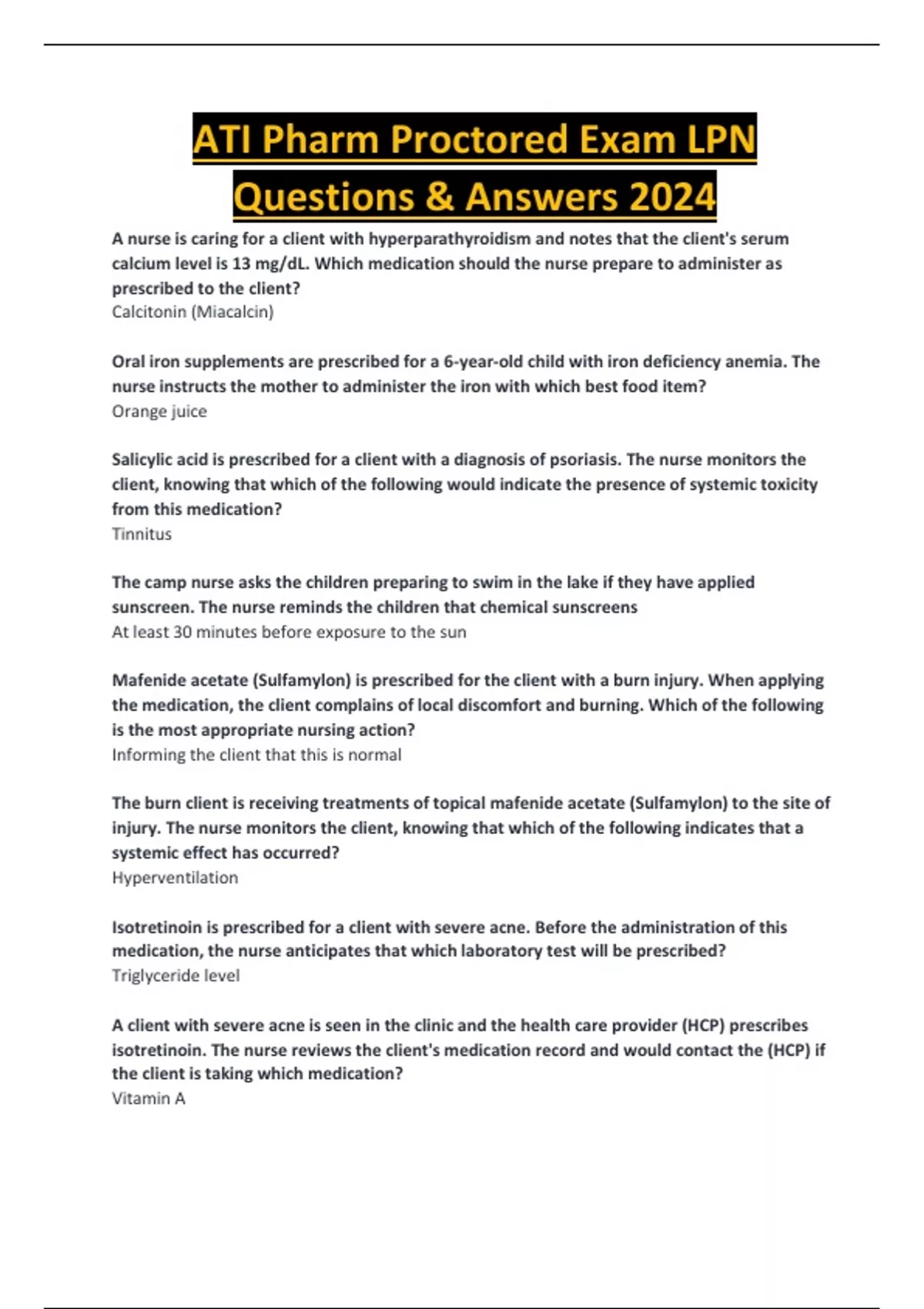 ATI Pharm Proctored Exam LPN Questions & Answers 2024
