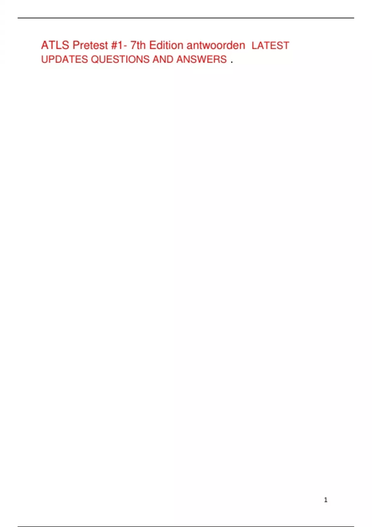 ATLS Pretest #1- 7th Edition antwoorden LATEST UPDATES QUESTIONS AND ANSWERS