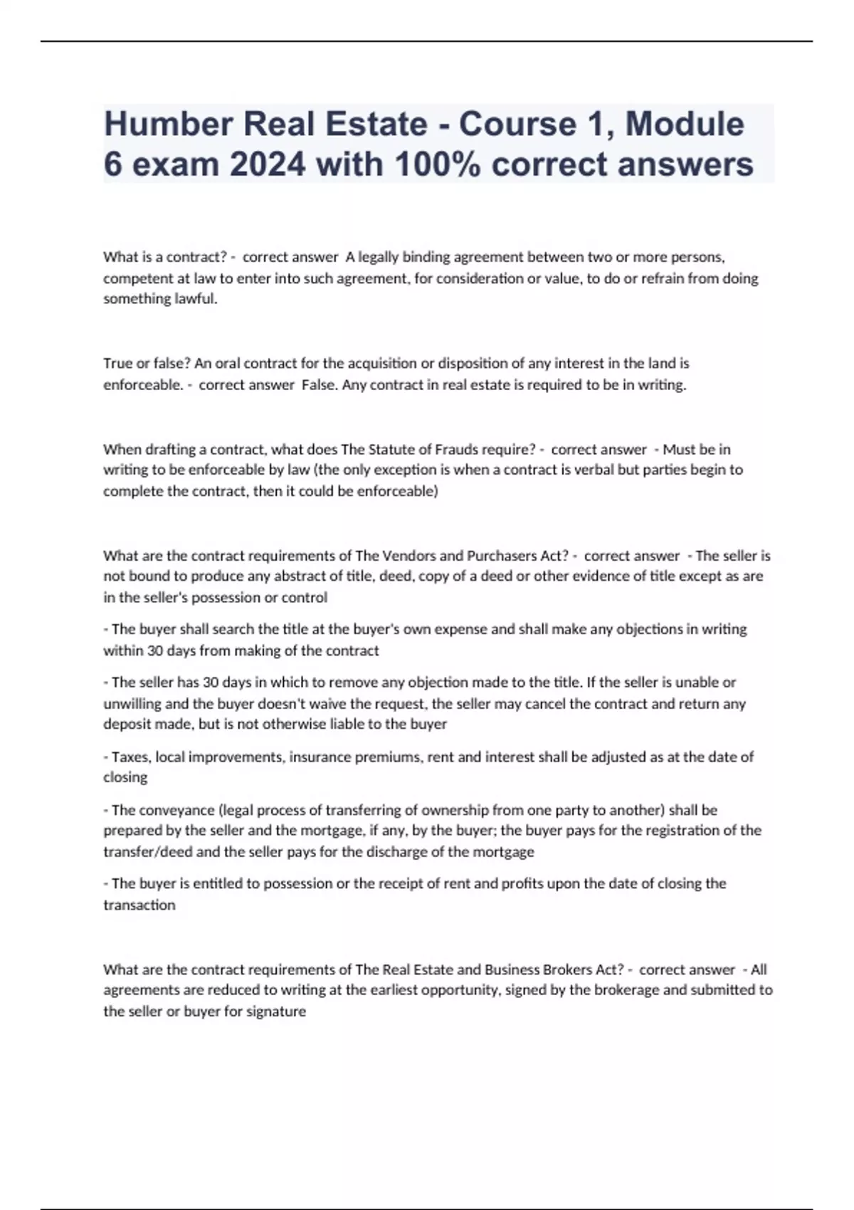 Humber Real Estate - Course 1, Module 6 exam 2024 with 100% correct answers