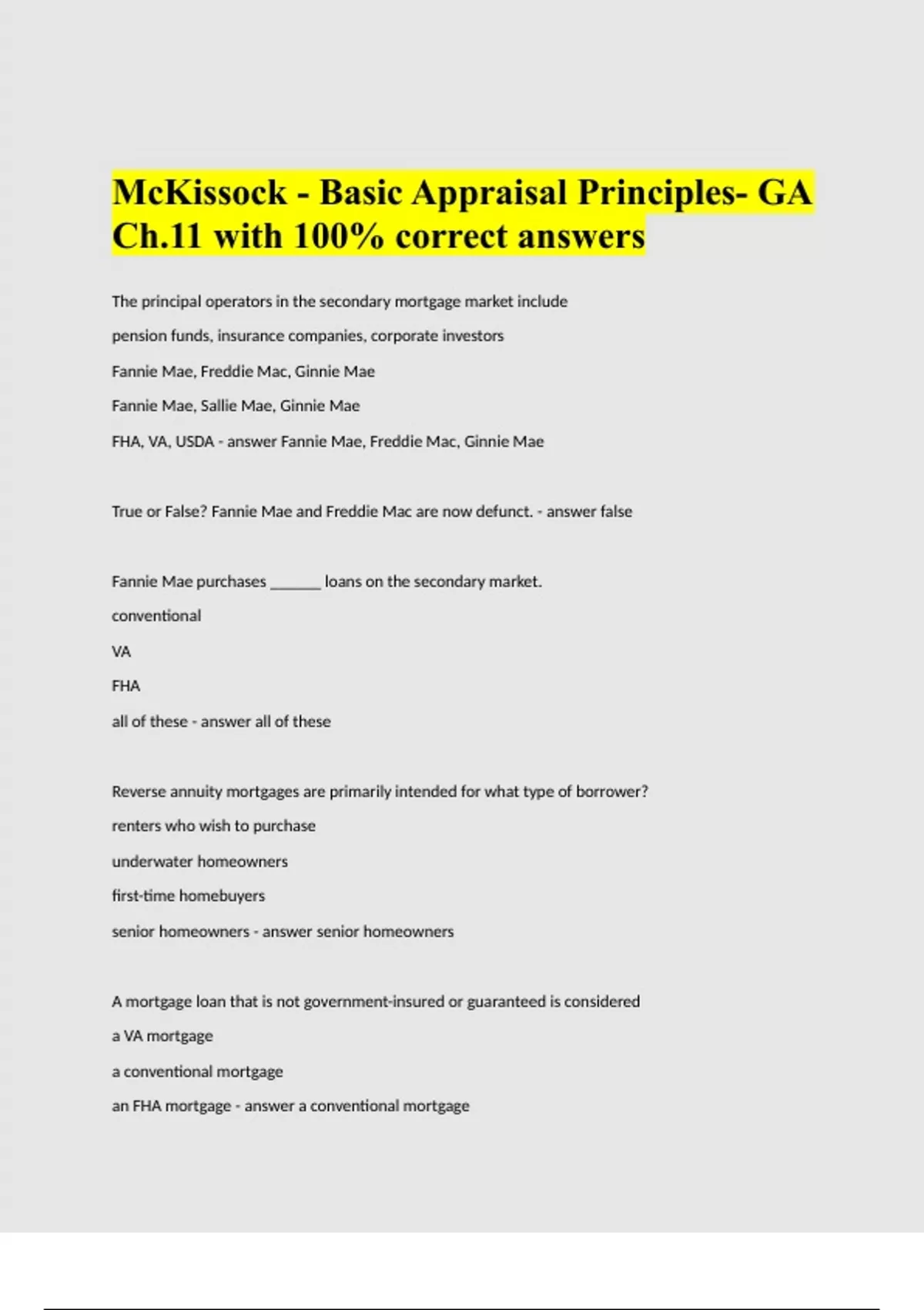McKissock - Basic Appraisal Principles- GA Ch.11 with 100% correct answers