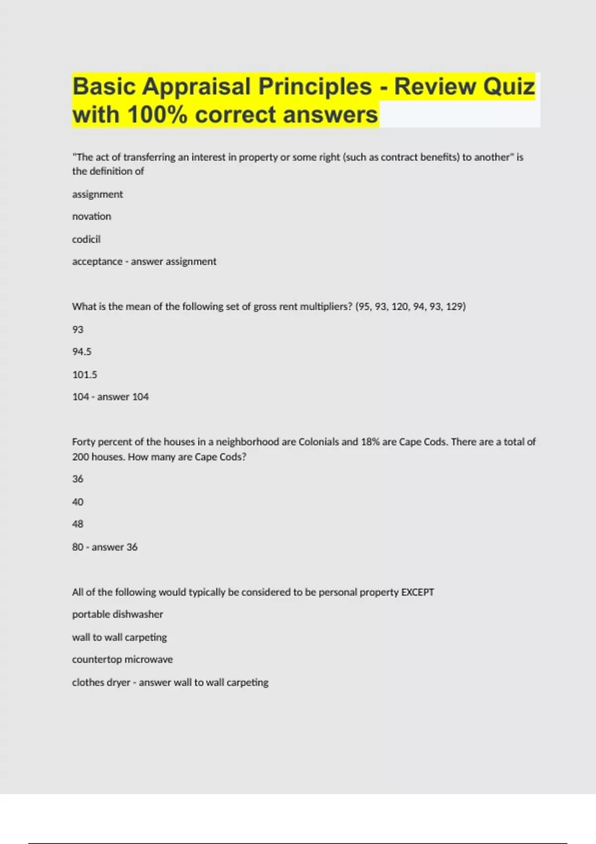 Basic Appraisal Principles - Review Quiz with 100% correct answers