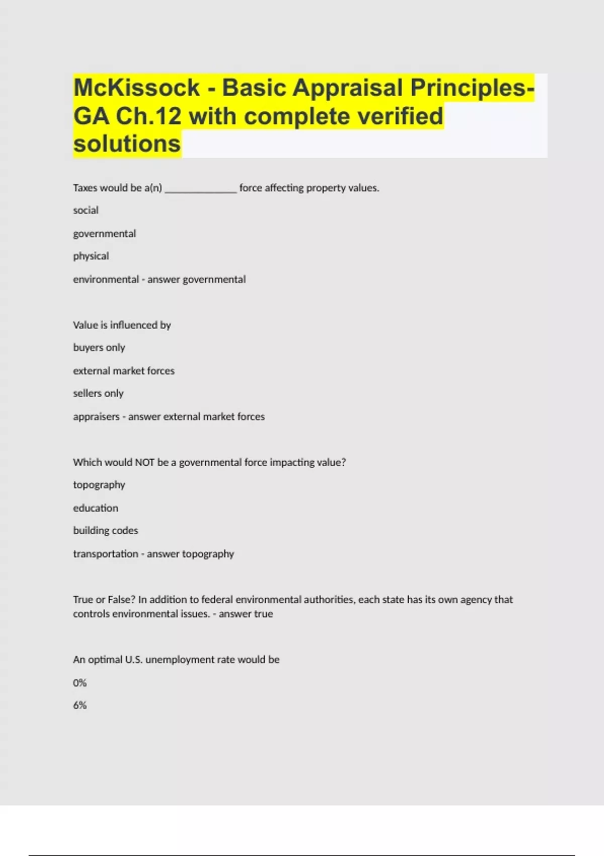 McKissock - Basic Appraisal Principles- GA Ch.12 with complete verified solutions.