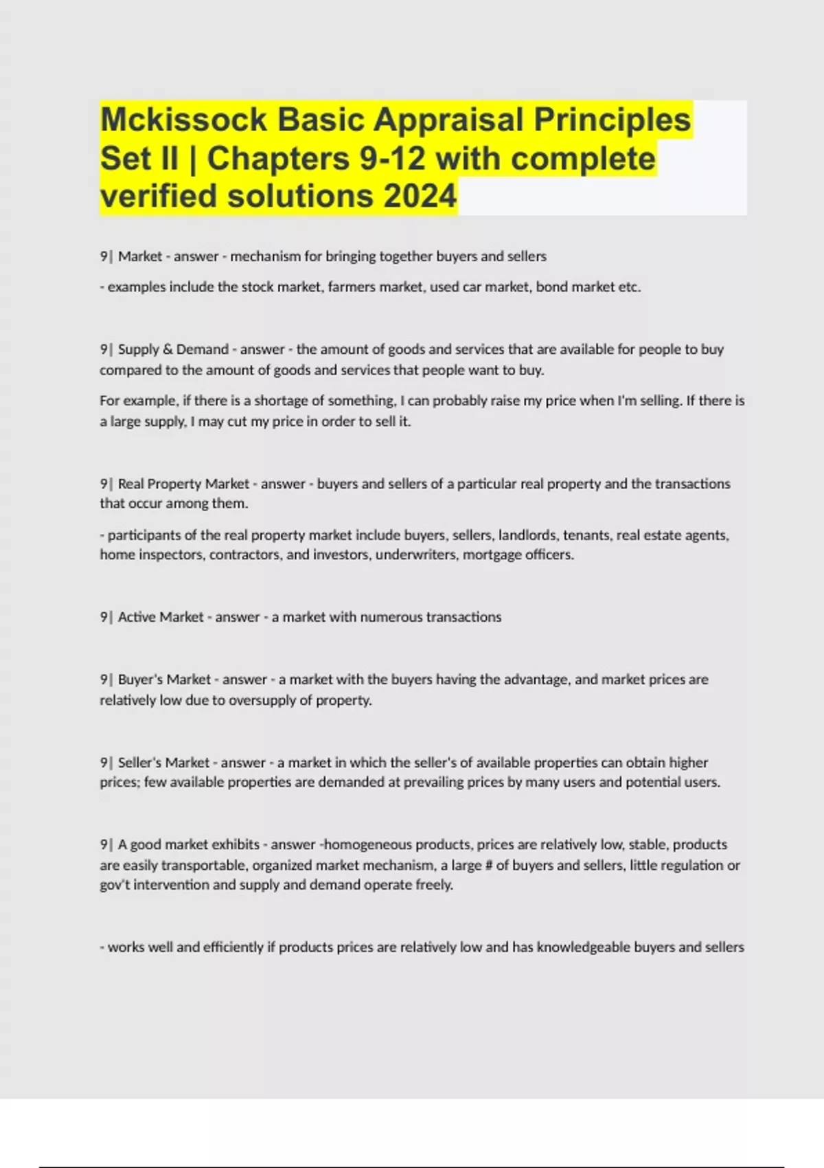 Mckissock Basic Appraisal Principles Set II Chapters 9-12 with complete verified solutions 2024.