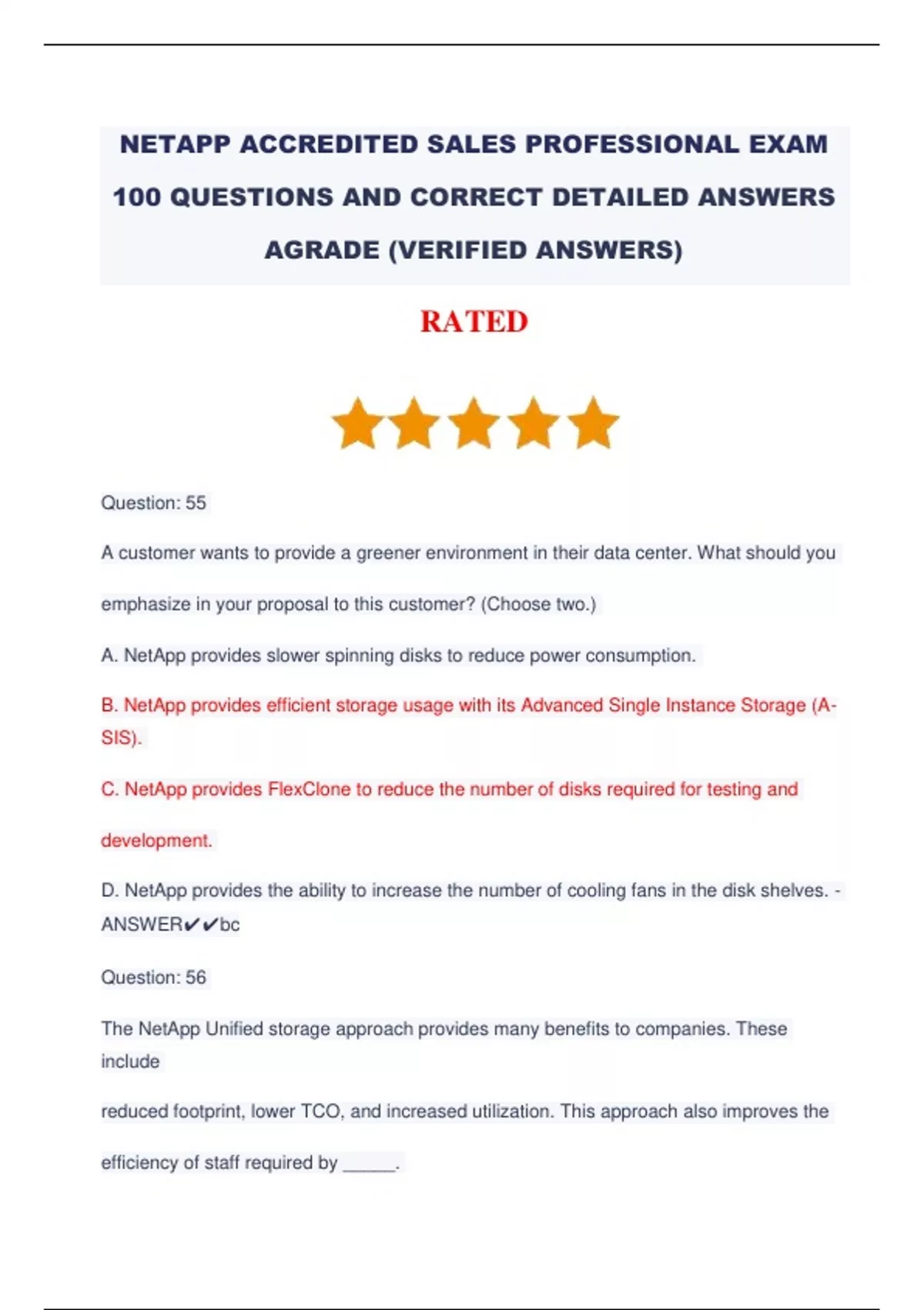 NETAPP ACCREDITED SALES PROFESSIONAL EXAM 100 QUESTIONS AND CORRECT DETAILED ANSWERS AGRADE (VERIFIED ANSWERS).