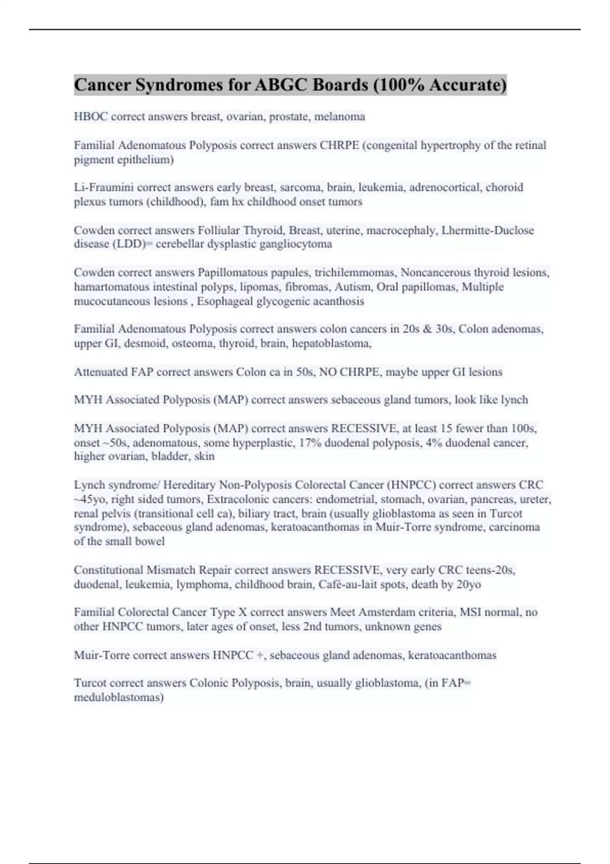 Cancer Syndromes for ABGC Boards (100% Accurate)