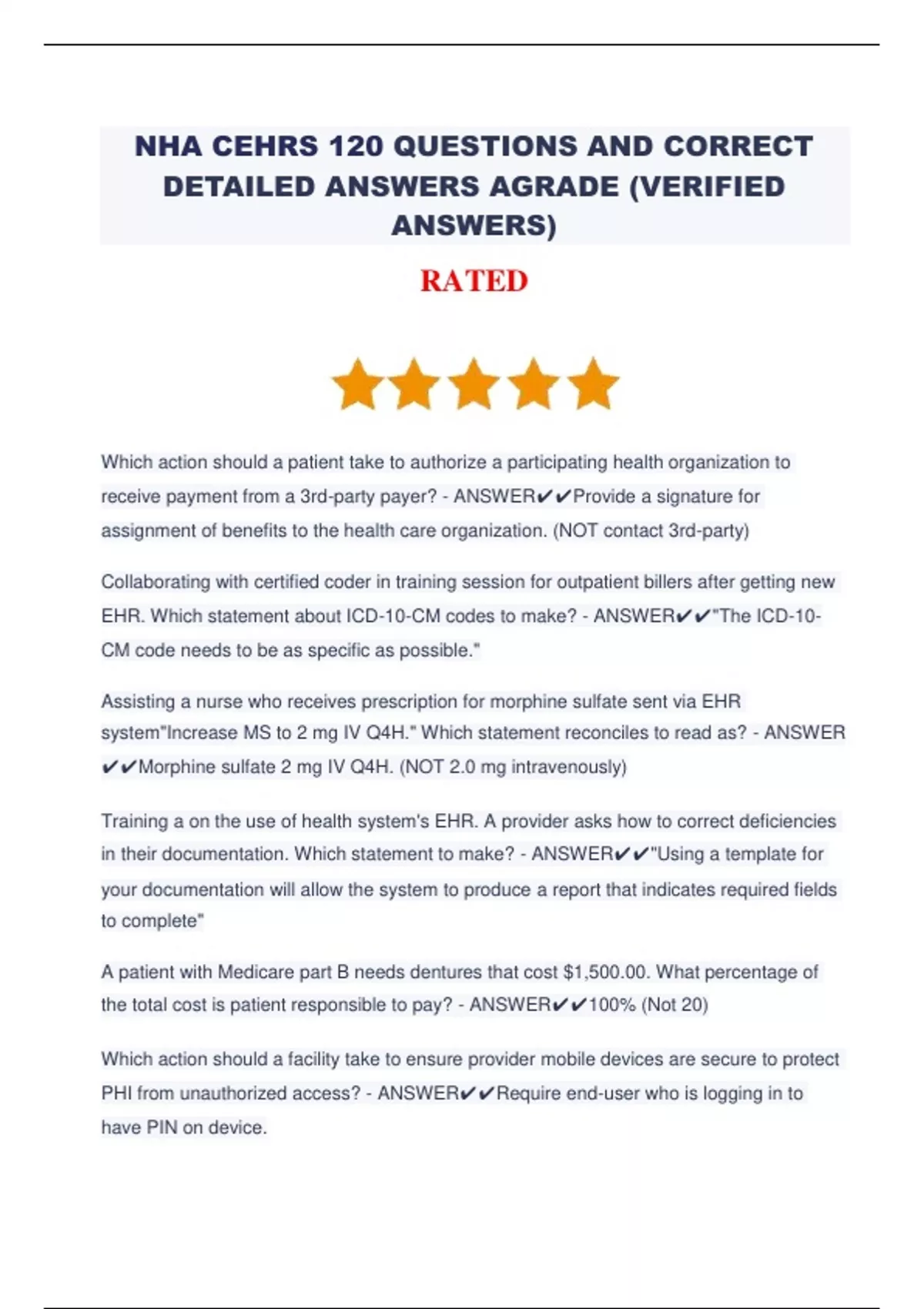 NHA CEHRS 120 QUESTIONS AND CORRECT DETAILED ANSWERS AGRADE (VERIFIED ANSWERS).