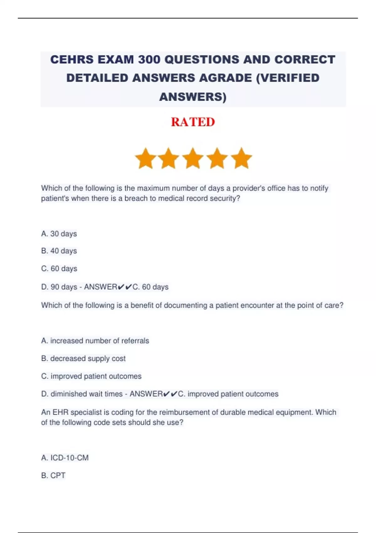cehrs exam 300 questions and correct detailed answ