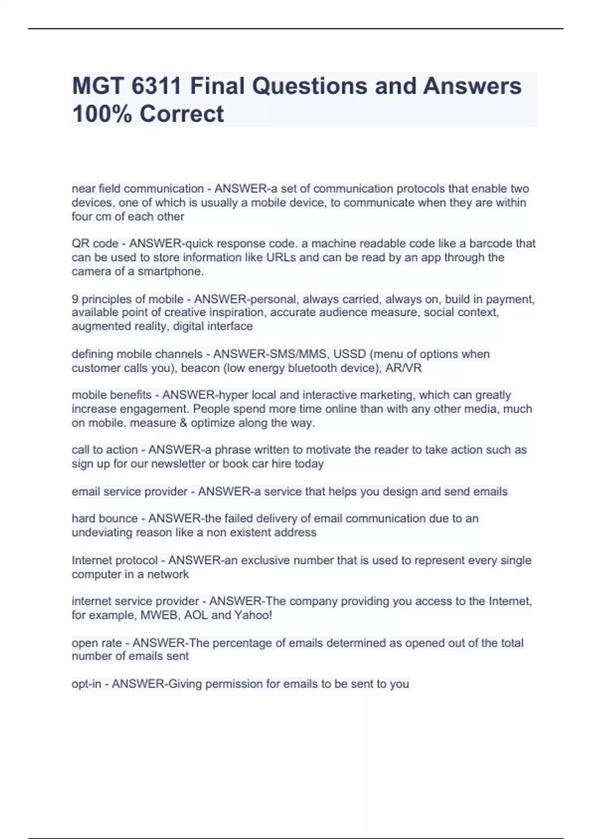 mgt 6311 final questions and answers stuvia
