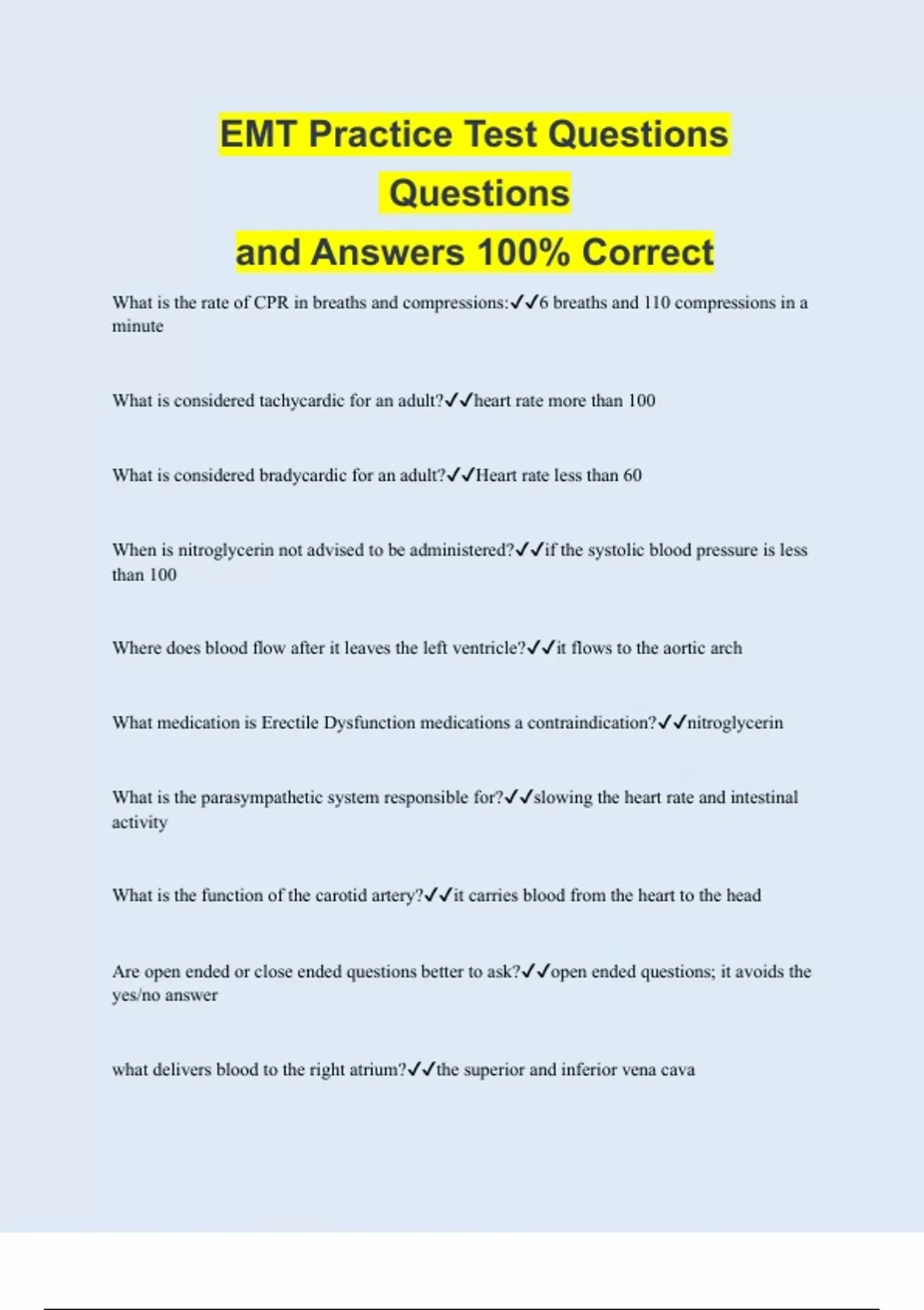 EMT Practice Test Questions Questions and Answers 100% Correct