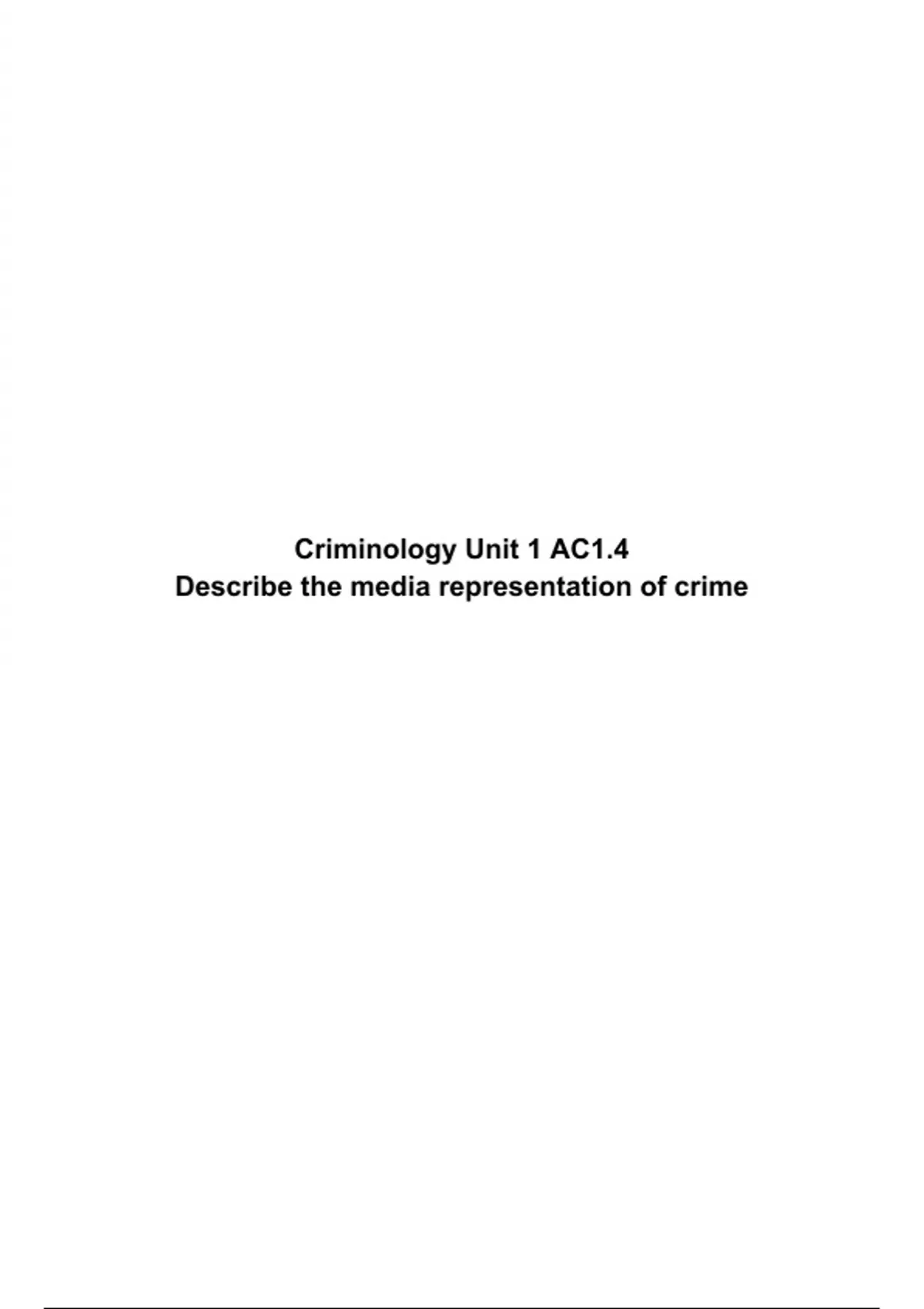 WJEC Criminology Unit 1 - Changing awareness of crime AC1.4 - Describe the media representation of crime