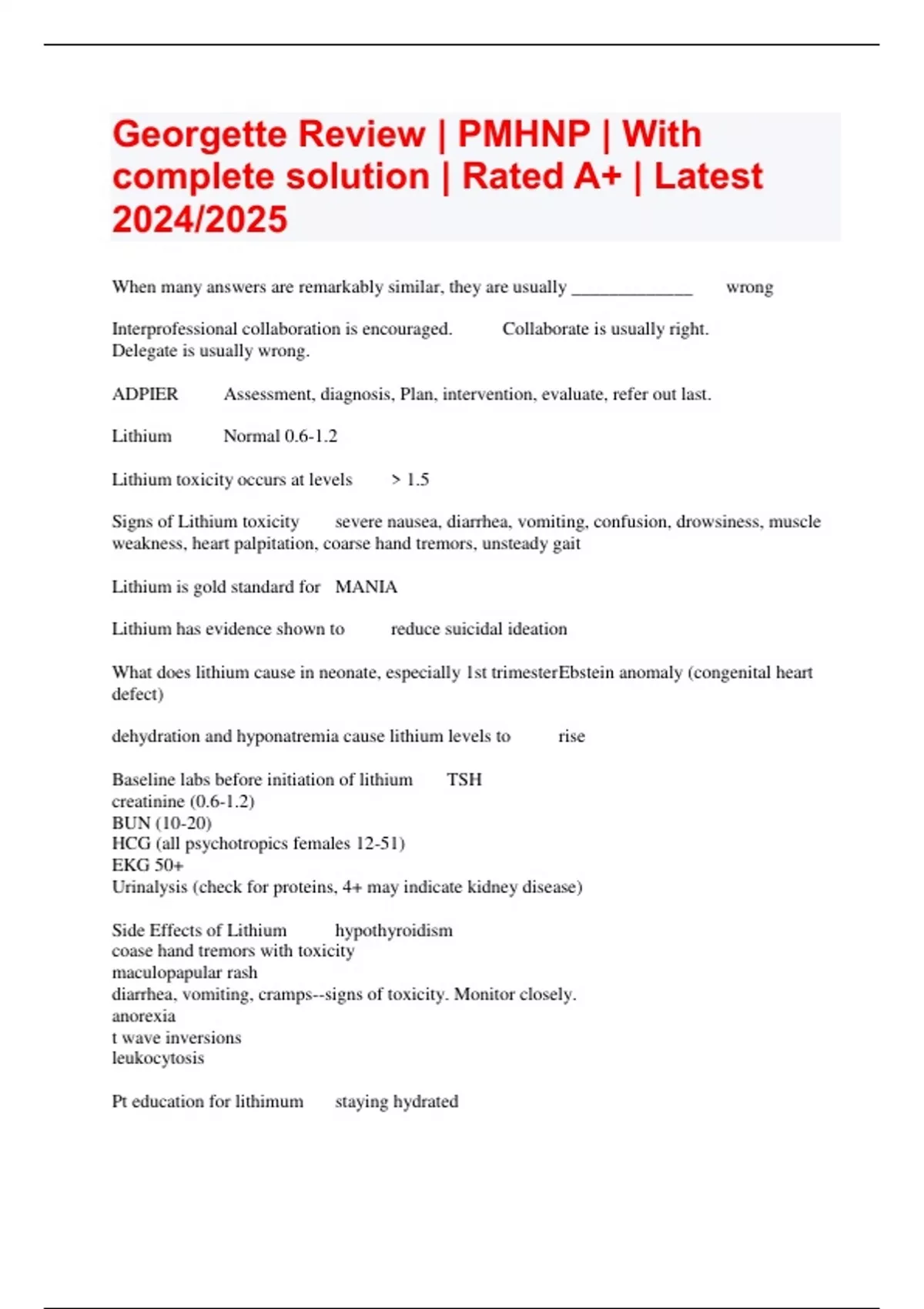 Georgette Review | PMHNP | With complete solution | Rated A+ | Latest 2024/2025