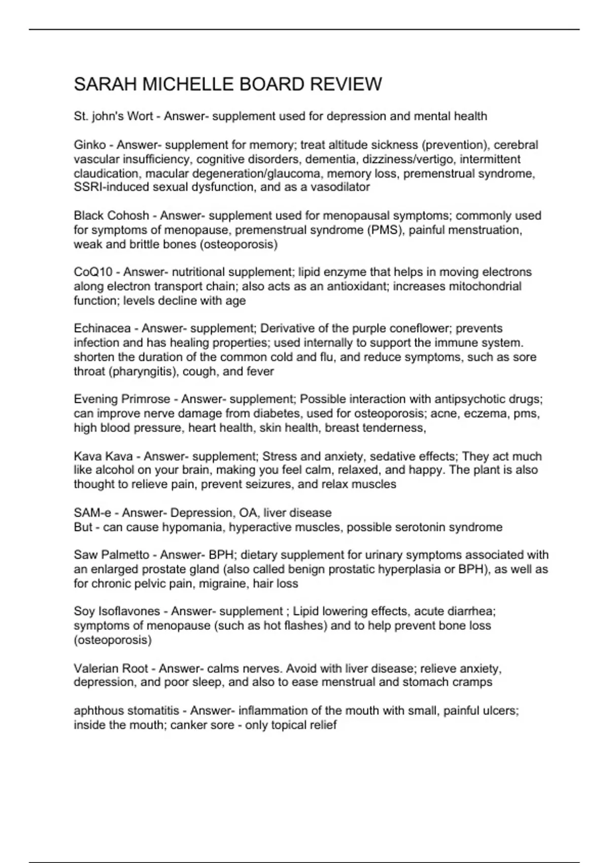SARAH MICHELLE BOARD REVIEW