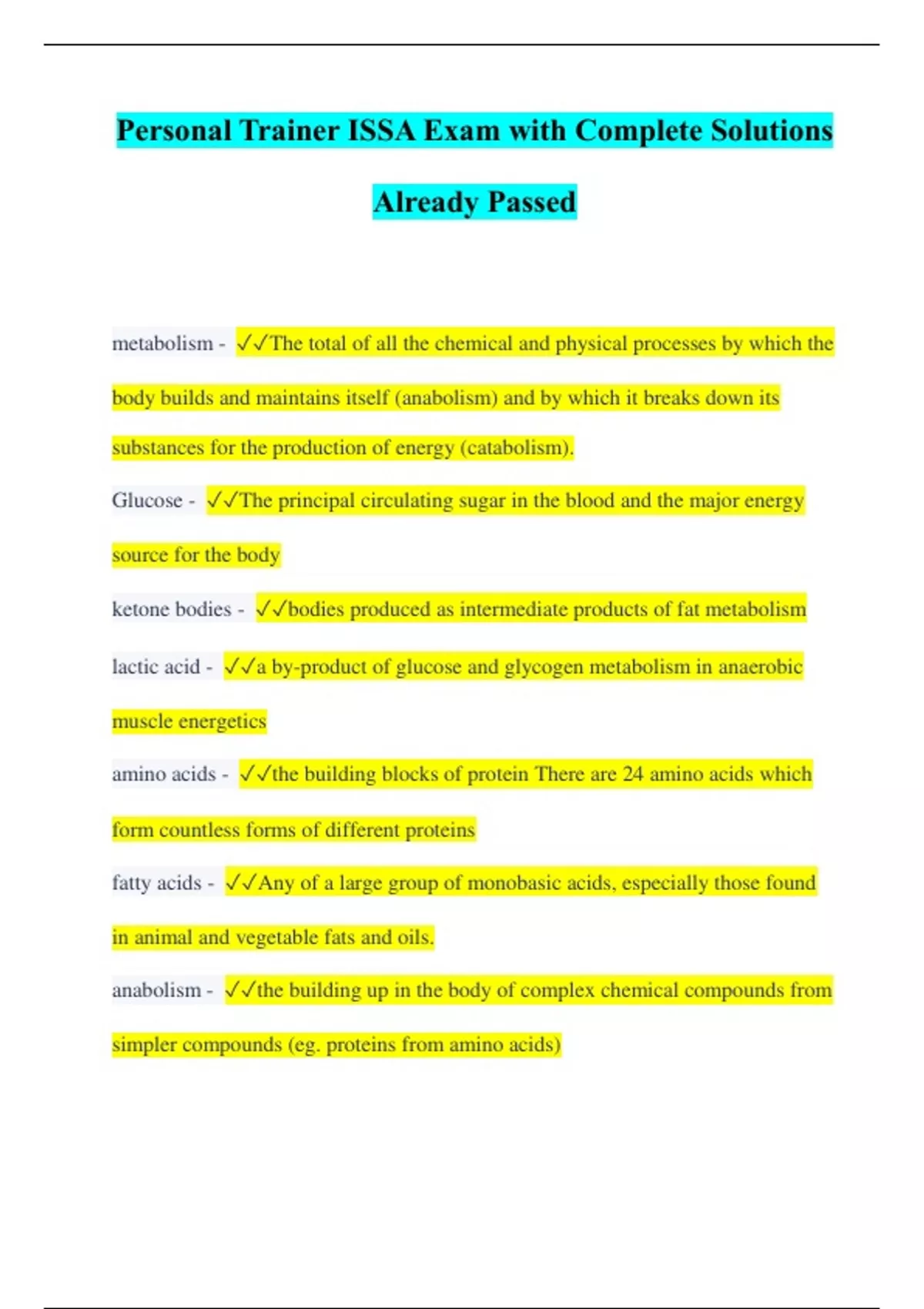 Personal Trainer ISSA Exam with Complete Solutions Already Passed