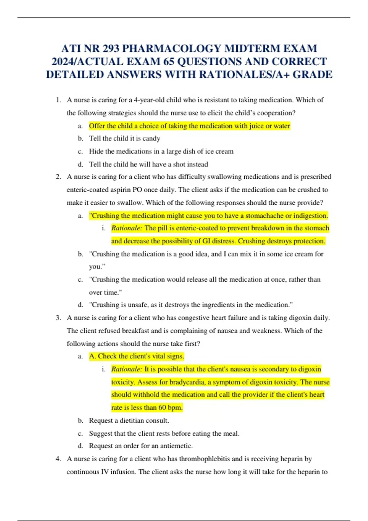 ATI NR 293 PHARMACOLOGY MIDTERM EXAM 2024/ACTUAL EXAM 65 QUESTIONS AND CORRECT DETAILED ANSWERS WITH RATIONALES/A+ GRADE