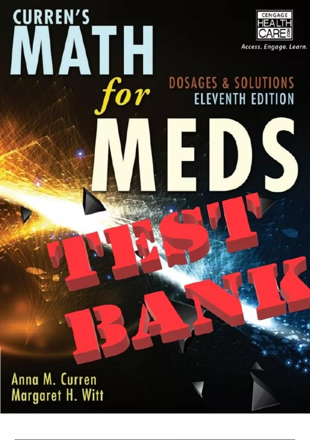 TEST BANK & SOLUTIONS Curren's Math for Meds: Dosages and Solutions, 11th Edition 11th Edition by Anna M. Curren & Margaret All Chapters 1-23.