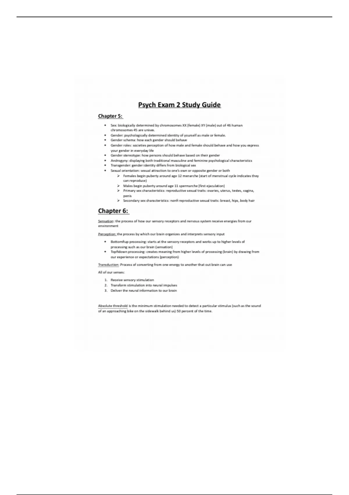 Absolute threshold is the minimum stimulation needed to detect a particular stimulus (such as the sound