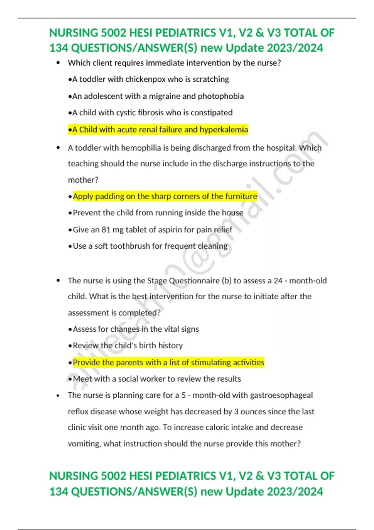 HESI PEDIATRICS V1, V2 & V3 peds rn EXAM QUESTIONS & ANSWERS/ LATEST UPDATE / RATED A+