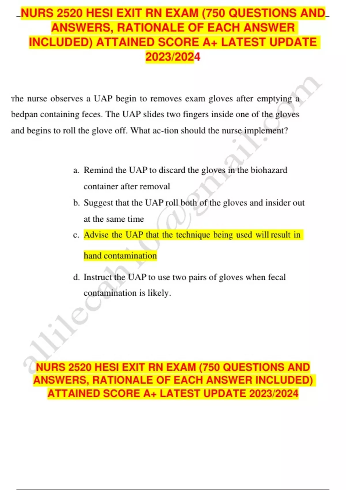 Nurs 2520 hesi exit rn EXAM QUESTIONS & ANSWERS/ LATEST UPDATE / RATED A+
