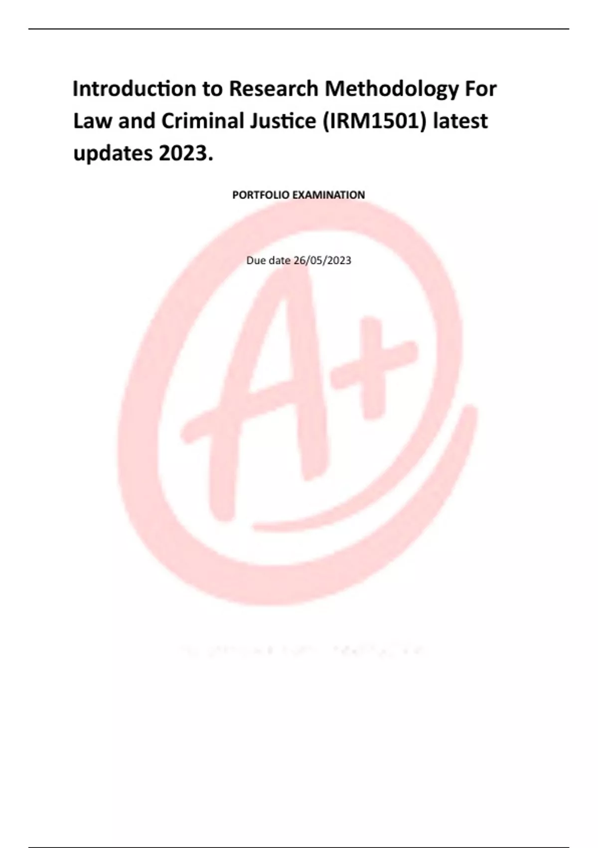 Introduction to Research Methodology For Law and Criminal Justice (IRM1501) latest updates 2023.