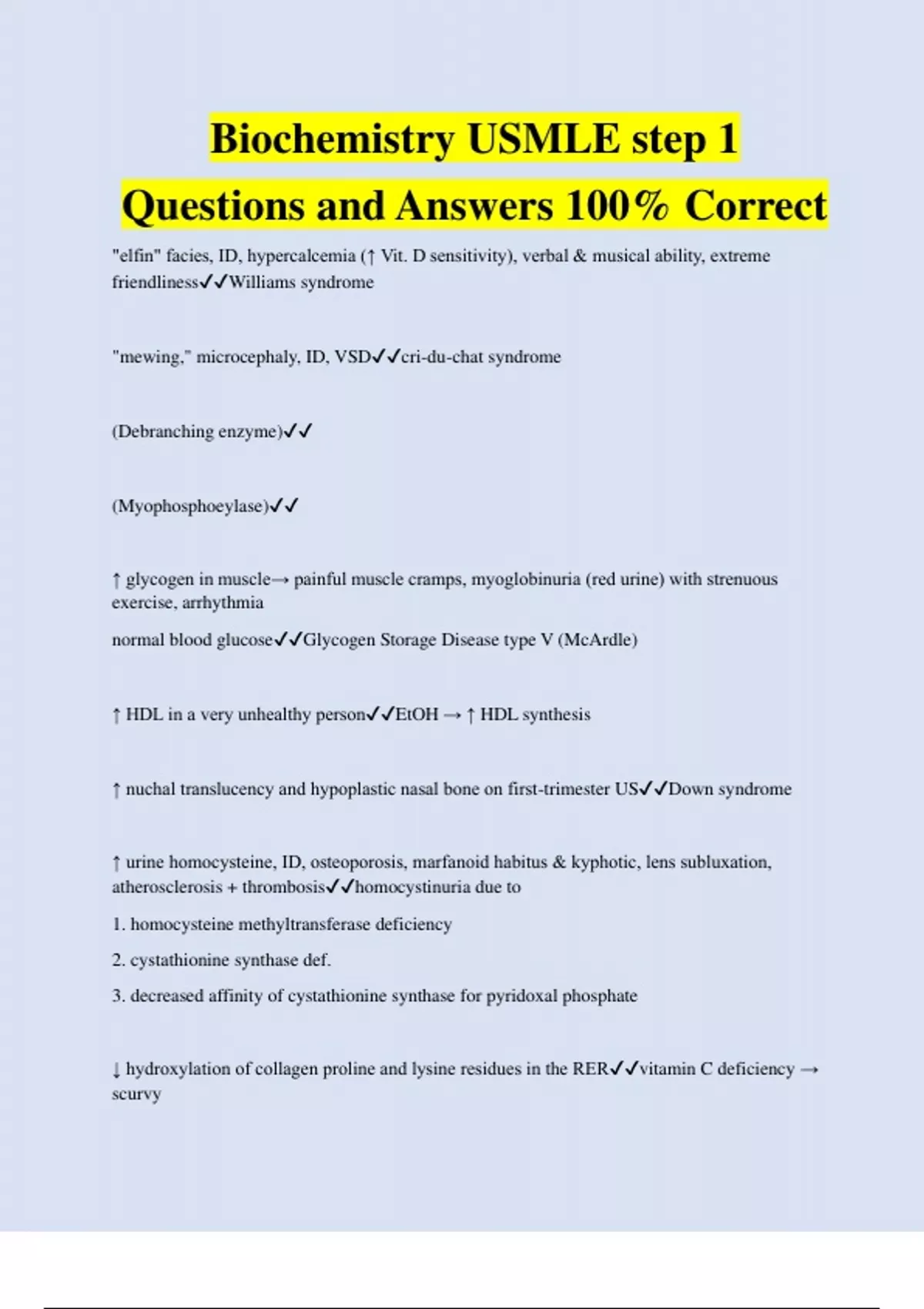 Biochemistry Section-USMLE Step 1 Questions and Answers 100% Correct