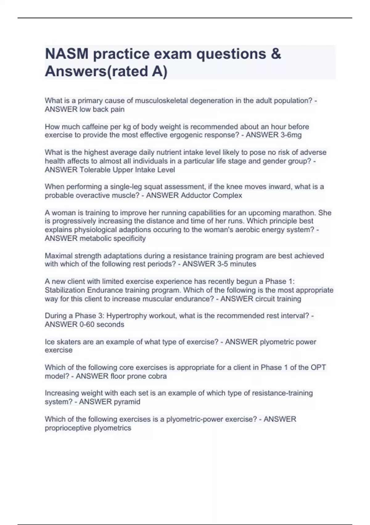 NASM pNASM practice exam questions & Answers(rated A)ractice exam quNASM practice exam questions & Answers(rated A)estions & AnNASM practice exam questions & Answers(rated A)swers(rated A)