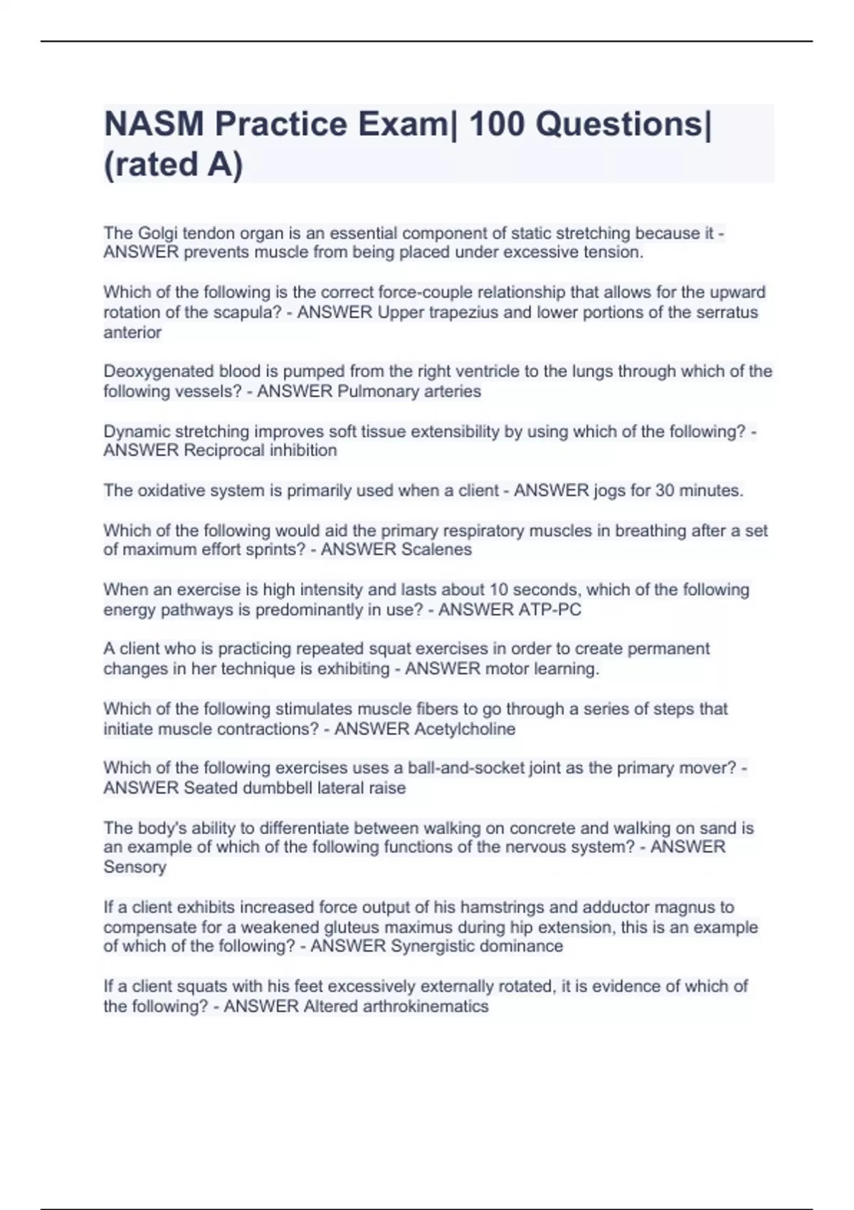 NASM Practice Exam| 100 Questions| (rated A) NASM Practice Exam| 100 Questions| (rated A) NASM Practice Exam| 100 Questions| (rated A) NASM Practice Exam| 100 Questions| (rated A)