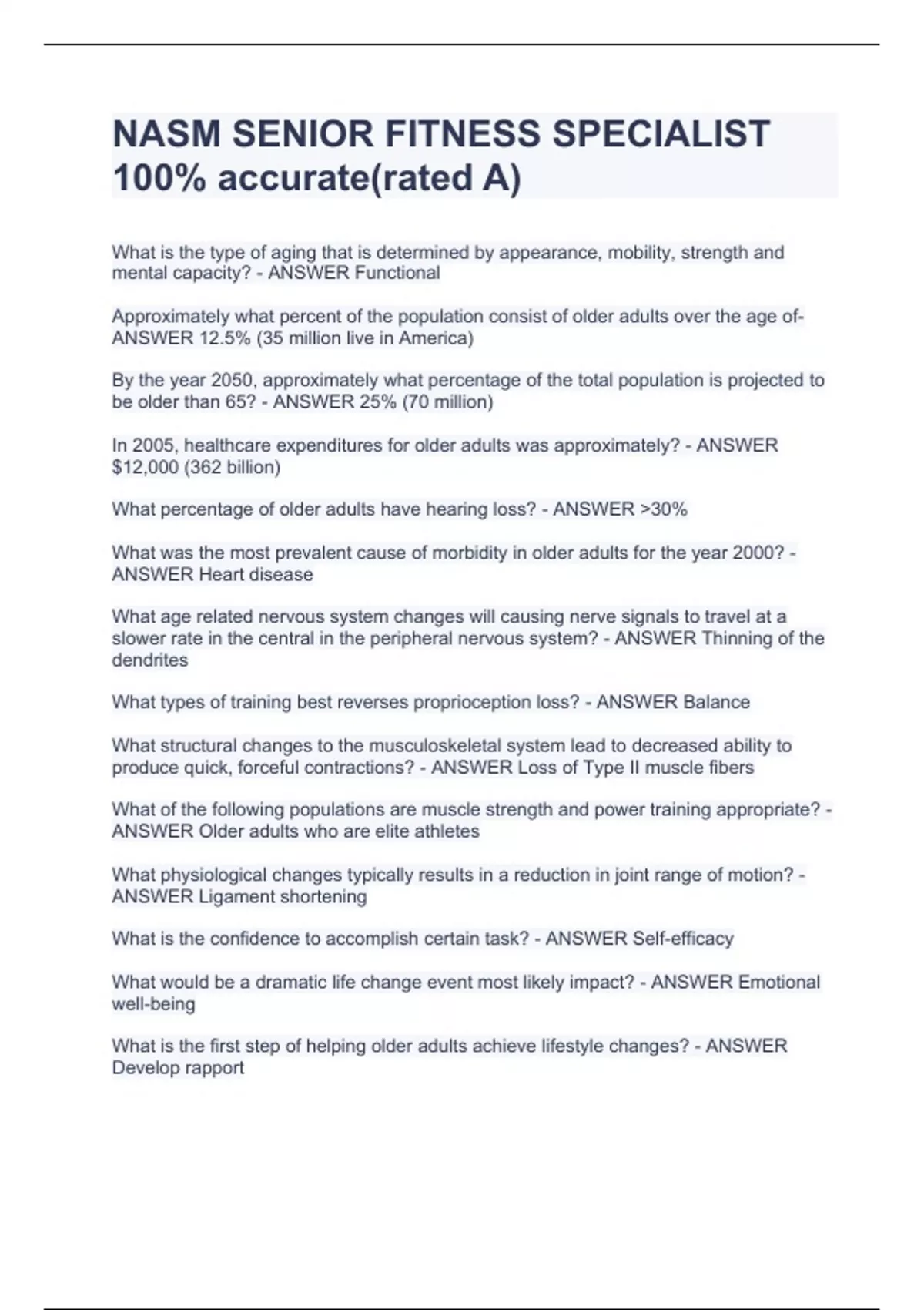 NASM SENIOR FITNESS SPECIALIST 100% accurate(rated A)NASM NASM SENIOR FITNESS SPECIALIST 100% accurate(rated A)SENIOR FITNESS SNASM SENIOR FITNESS SPECIALIST 100% accurate(rated A)PECIALIST 100% accurate(rated A)
