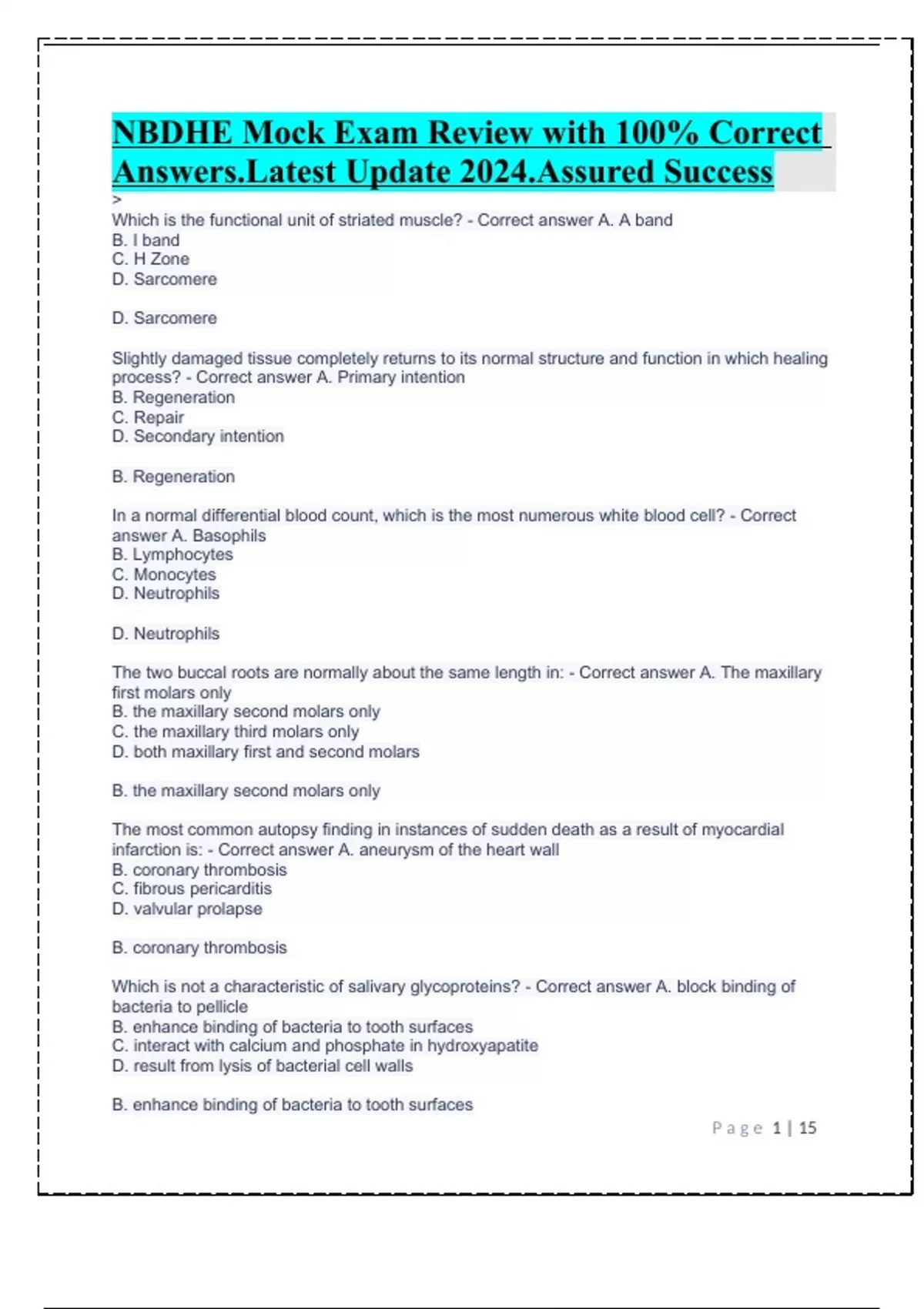 NBDHE Mock Exam Review with 100% Correct Answers.Latest Update 2024.Assured Success.NBDHE Mock Exam Review with 100% Correct Answers.Latest Update 2024.Assured Success.NBDHE Mock Exam Review with 100% Correct Answers.Latest Update 2024.Assured Success.