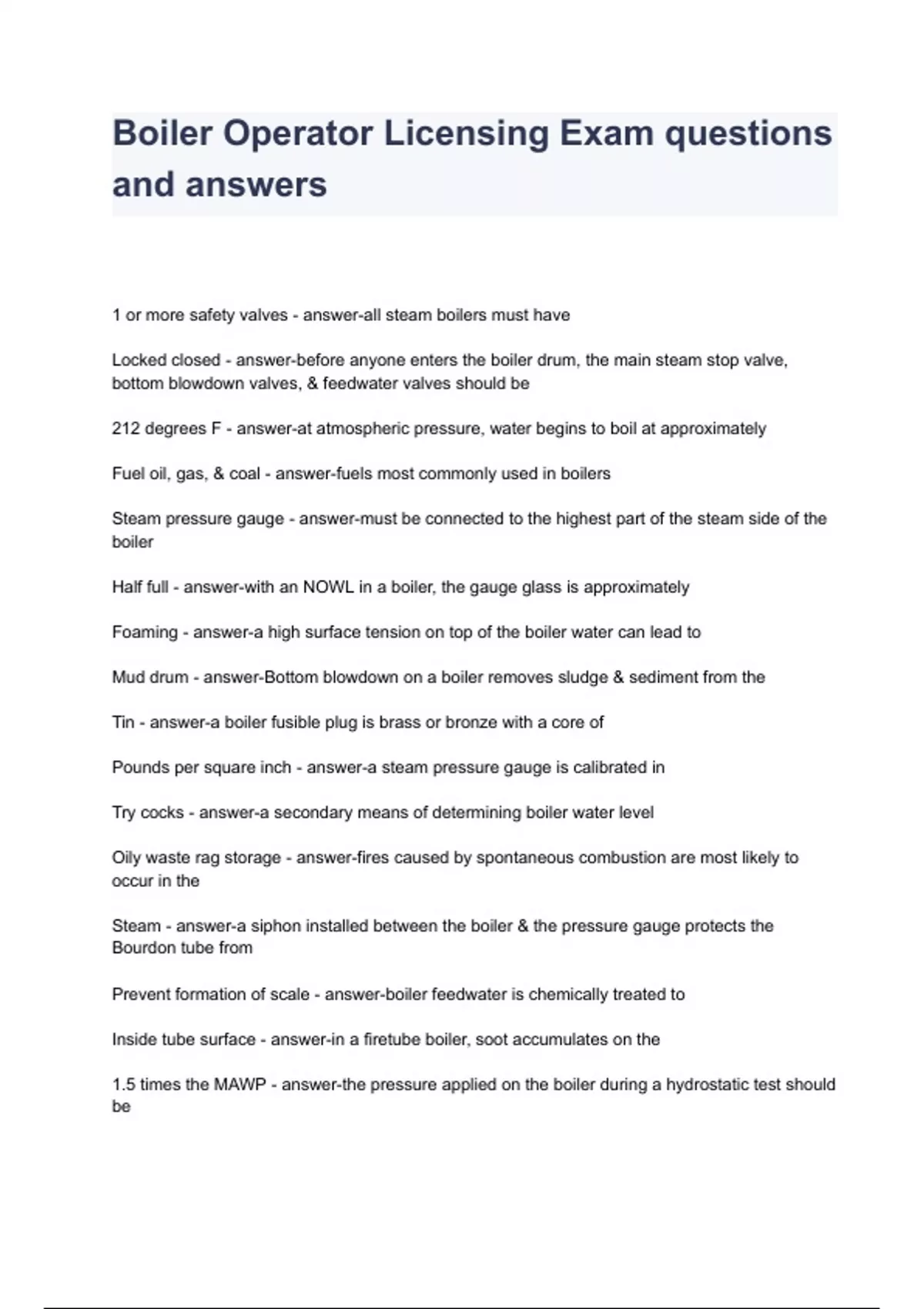 Boiler Operator Licensing Exam questions and answers