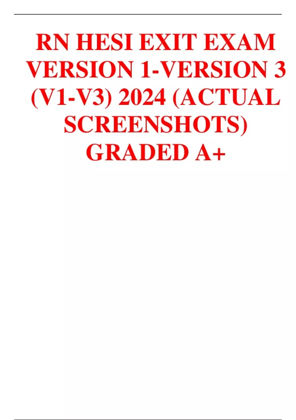 RN HESI EXIT EXAM VERSION 1-VERSION 3 (V1-V3) 2024 (ACTUAL SCREENSHOTS) GRADED A+