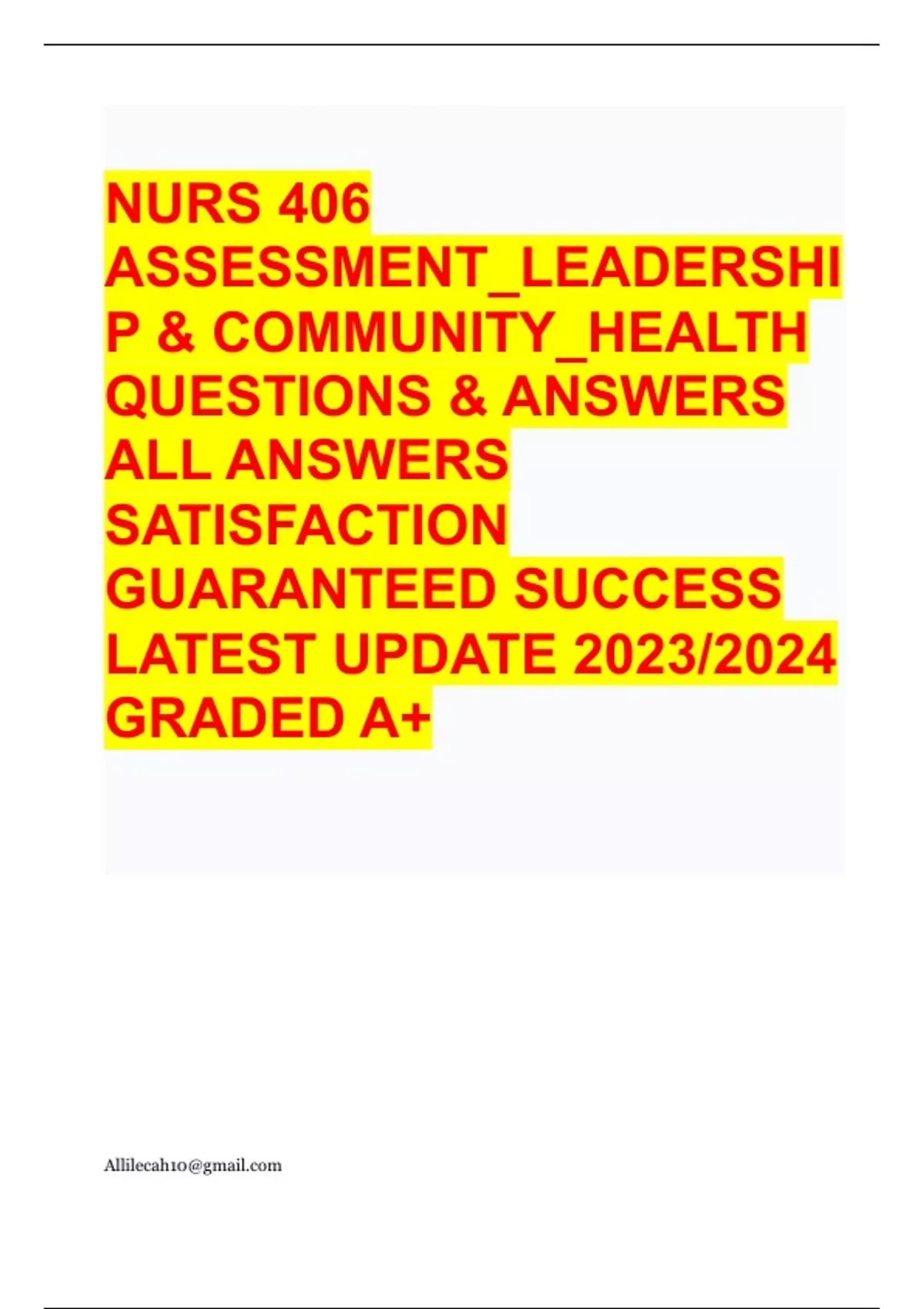 Nurs 406 assessment leadership community health EXAM QUESTIONS & ANSWERS/ LATEST UPDATE / RATED A+