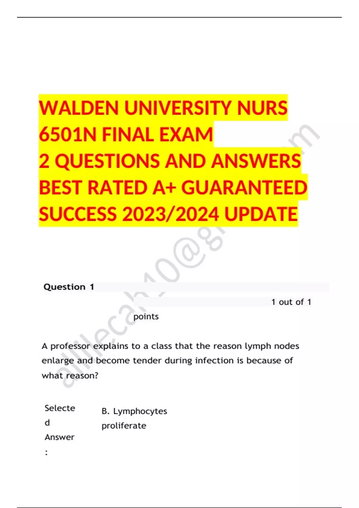 Nurs 6501n final EXAM QUESTIONS & ANSWERS/ LATEST UPDATE / RATED A+