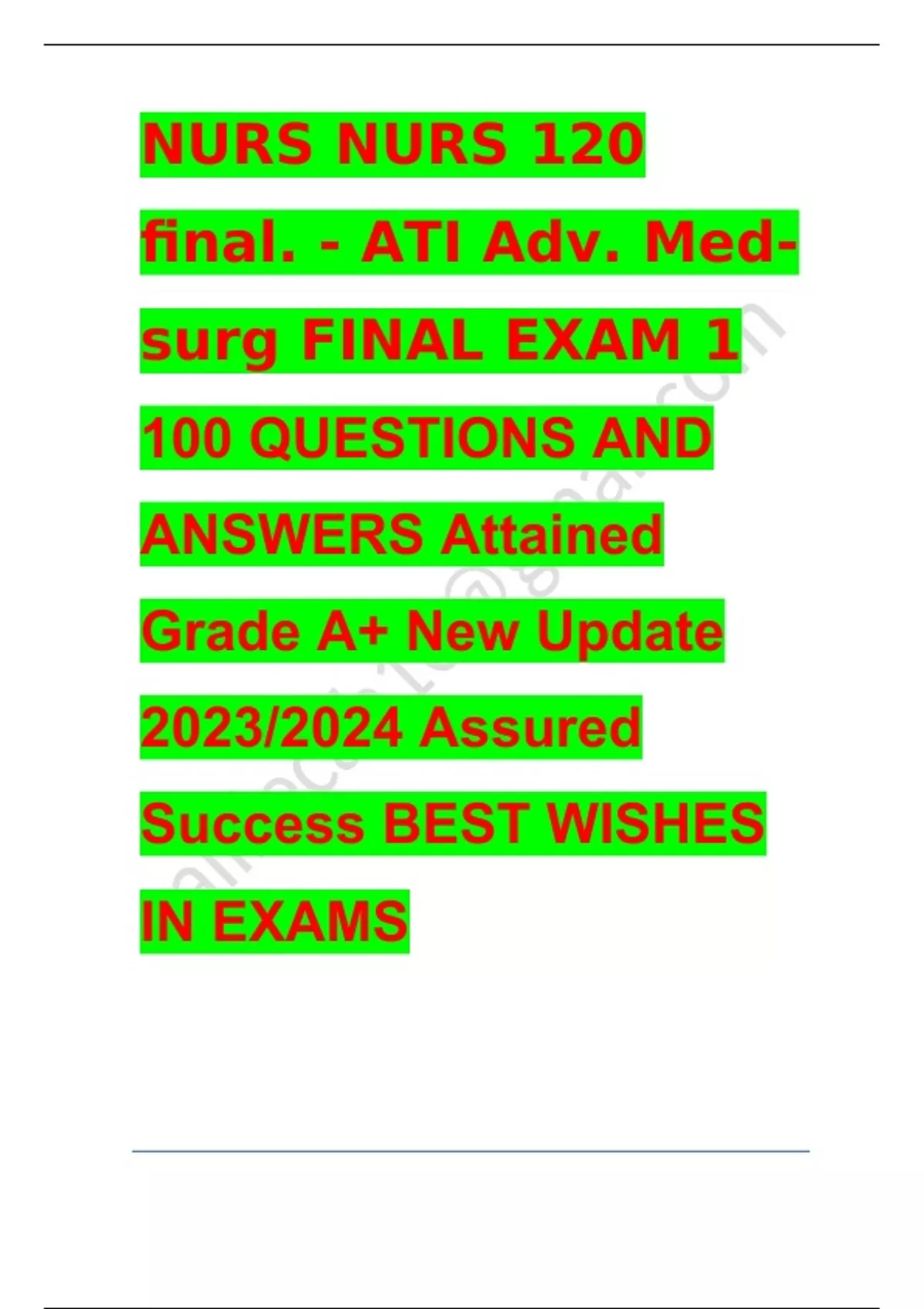 nurs 120 final exam questions answers latest