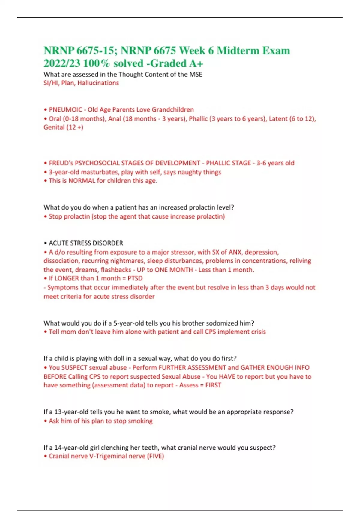 NRNP 6675-15; NRNP 6675 Week 6 Midterm Exam 2022/23 100% solved -Graded A+
