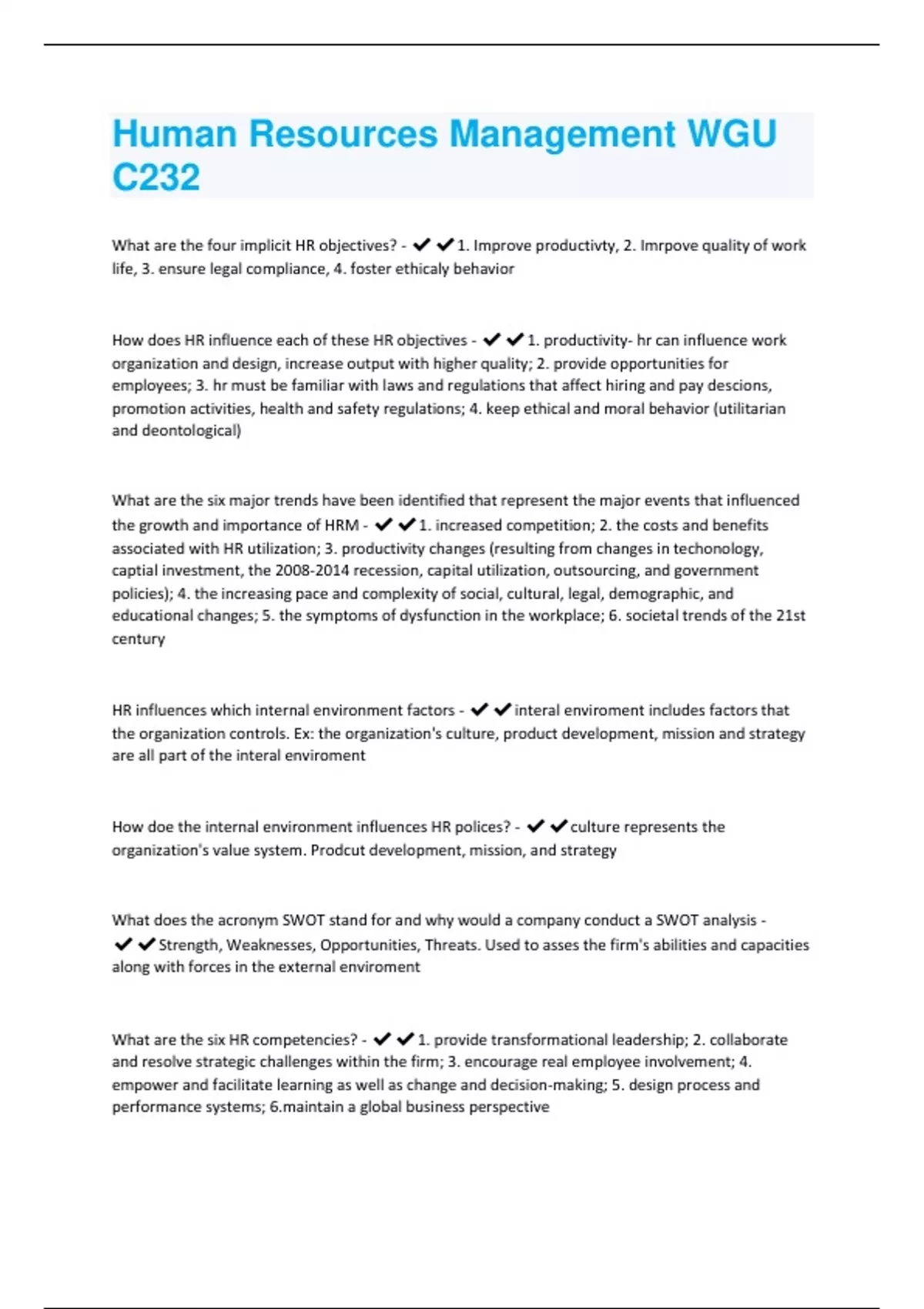 - Human Resources Management WGU C232