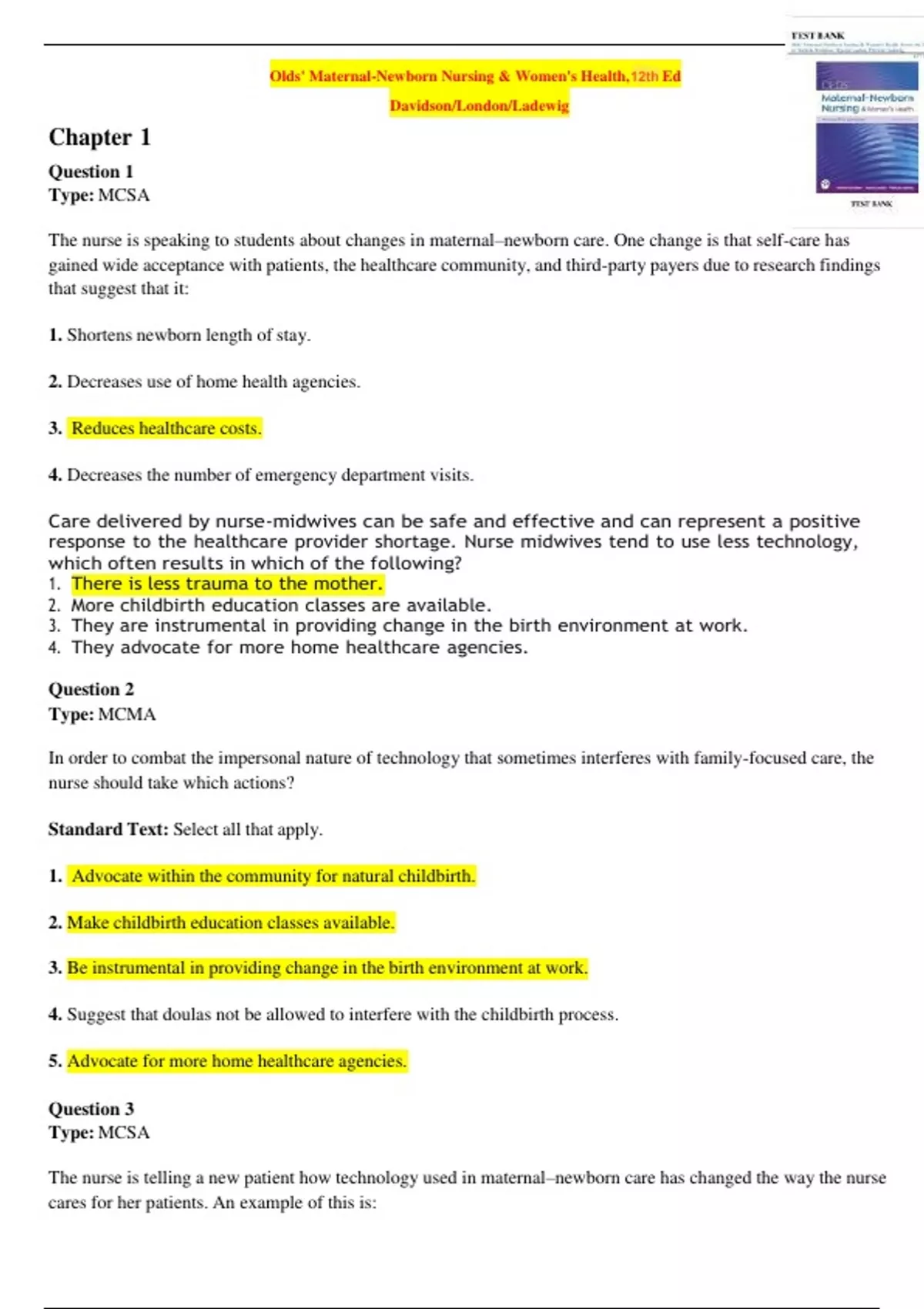 The nurse is speaking to students about changes in maternal–newborn care. One change is that self-care has