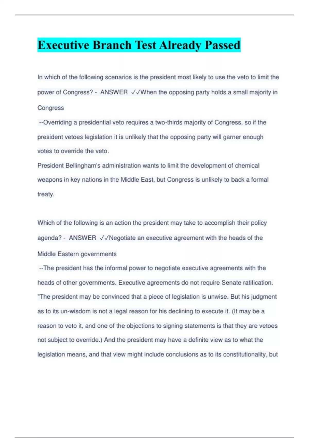 Executive Branch Exams Together with complete solutions Questions and Answers Graded A , Latest Update (Verified Answers) (Full Solution Pack)
