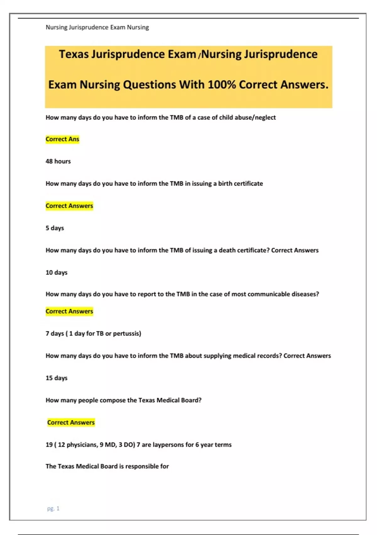 Texas Jurisprudence Exam /Nursing Jurisprudence Exam Nursing Questions With 100% Correct Answers. Texas Jurisprudence Exam /Nursing Jurisprudence Exam Nursing Questions With 100% Correct Answers.